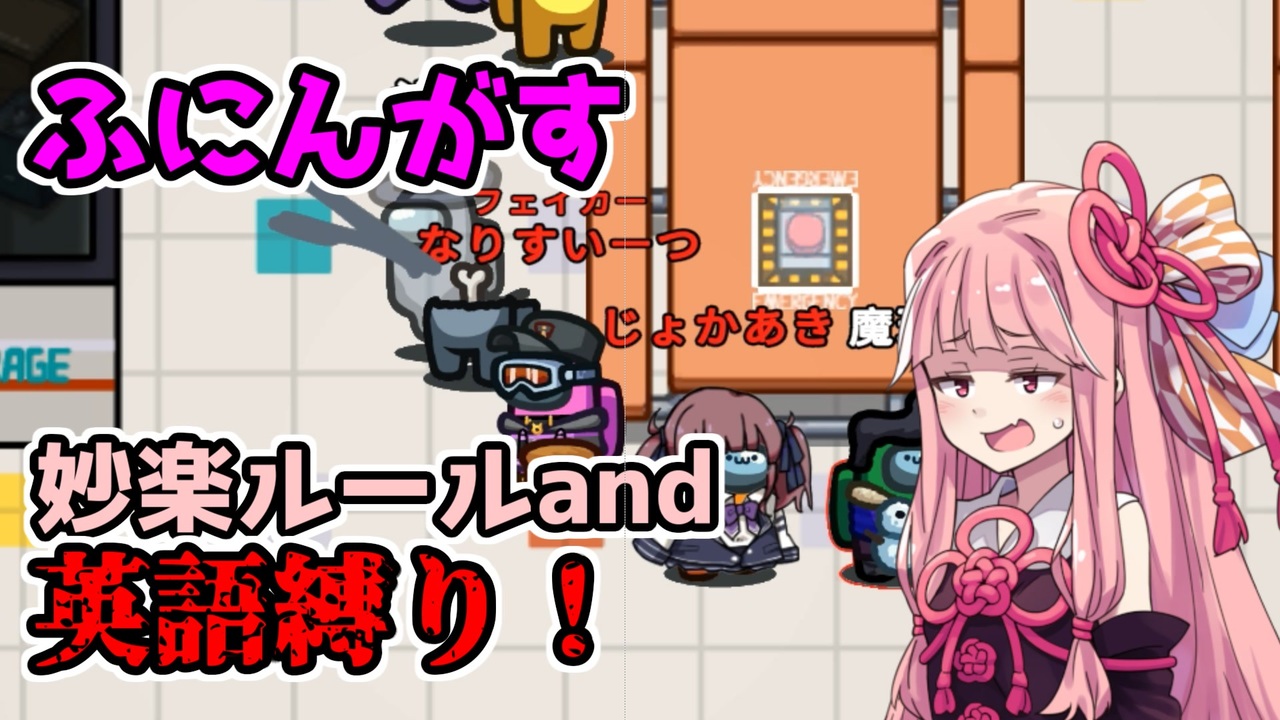 <span style="color: #ff0000; font-size: 24px;"><strong><i>あもんぐあすの時間だオラァ!!!!!</i></strong></span><br>ふにんがすで妙楽スペシャルルールかつ英語縛りで遊んだ時の様子を動画にしました<br>妙楽スペシャルルール!?なんだそれは!?<br>ククク...妙楽スペシャルルールとは全員職持ちかつ職の能力が基本的に極端に強くしている設定のことだ<br><br><br>動画へのいいねなどもよろしければお願いします!<br>いいねは次回予告となります<br><br><span style="color: #ff00ff; font-size: 24px;"><strong>ニコニコクリエイターサポートという機能が開始しています<br>よろしければご登録お願い致します!</strong></span><br><br>クリエイターサポートについて<br><a href="https://site.nicovideo.jp/creator-support/?ref=cspt-tool" target="_blank" rel="noopener nofollow">https://site.nicovideo.jp/creator-support/?ref=cspt-tool</a><br><br>youtube版はこちら!<br><a href="https://youtu.be/y6KdgIPwCAE" target="_blank" rel="noopener nofollow">https://youtu.be/y6KdgIPwCAE</a><br><br>動画の試合アーカイブ【3:19:25~】<br><a href="https://youtu.be/6HqSGkaHDTA" target="_blank" rel="noopener nofollow">https://youtu.be/6HqSGkaHDTA</a><br><br>Twitterアカウント<br><a href="https://twitter.com/rainbow7akane" target="_blank" rel="noopener nofollow">https://twitter.com/rainbow7akane</a><br><br>生放送しているコミュニティ→co3954244<br>他に投稿している動画part1集→<a href="https://www.nicovideo.jp/mylist/64134854" target="_blank" rel="noopener">mylist/64134854</a><br><br>前→<a href="https://www.nicovideo.jp/watch/sm41385291" class="watch">sm41385291</a><br>次→まーだだよ