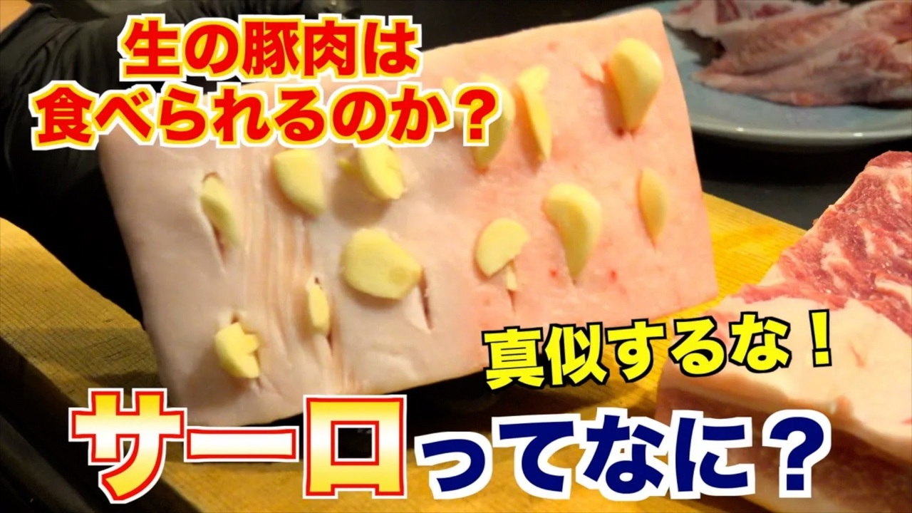 日本で生の豚肉食べる人っていないですよね?<br>世界を見渡せば、生の豚肉を食べる習慣がある国があります。<br>ウクライナやロシア、ポーランドなどではサーロと呼ばれる豚肉の脂身を塩漬けした料理があります!<br>焼いたり、蒸したり、燻したりはしてません!<br>日本では湿度や気候などもあり一般家庭で作るには危険なので、真似はしないようにしてください!<br>それでは早速やっていきましょう!<br>#サーロ #豚肉<br />群馬県前橋市でホルモン屋を営んでいるホルモンしま田です。<br>YouTubeをメインにホルモンの魅力や肉の楽しさなどを投稿しています。<br>これからニコニコへも動画投稿していこうと思うので<br>よかったらチャンネル登録よろしくお願いいたします!!<br>YouTube : <span style="color: #262626;"><a href="https://www.youtube.com/channel/UCm56mtuEDTYED2Y-qudj47g" target="_blank" rel="noopener nofollow">https://www.youtube.com/channel/UCm56mtuEDTYED2Y-qudj47g</a></span><br>Twitter : <a href="https://twitter.com/horumonshimata" target="_blank" rel="noopener nofollow">https://twitter.com/horumonshimata</a><br>Instagram : <a href="https://www.instagram.com/horumon_shimata/" target="_blank" rel="noopener nofollow">https://www.instagram.com/horumon_shimata/</a>