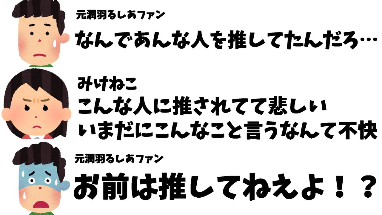 2022年11月24日、VTuberとしても活動されているみけねこ氏がホロライブの潤羽るしあさんのファンアートを投稿したユーザーに対して「かわいい…ニャオハに似てる」とリプライを送りました。それに反応したとある元潤羽るしあファンとのやり取りを紹介します。<br><br>引用<br><a href="https://twitter.com/95rn16/status/1595615329811824641" target="_blank" rel="noopener nofollow">https://twitter.com/95rn16/status/1595615329811824641</a><br><br>Youtube <a href="https://www.youtube.com/channel/UCzYQPx8MeE99DUkW9Y_txJw" target="_blank" rel="noopener nofollow">https://www.youtube.com/channel/UCzYQPx8MeE99DUkW9Y_txJw</a><br>twitter <a href="https://twitter.com/V_Virgin_Mary" target="_blank" rel="noopener nofollow">https://twitter.com/V_Virgin_Mary</a><br><br>使用素材<br>高品質なフリー動画素材 - Pixabay <a href="https://pixabay.com/ja/videos" target="_blank" rel="noopener nofollow">https://pixabay.com/ja/videos</a><br>いらすとや様 <a href="https://www.irasutoya.com/" target="_blank" rel="noopener nofollow">https://www.irasutoya.com/</a>