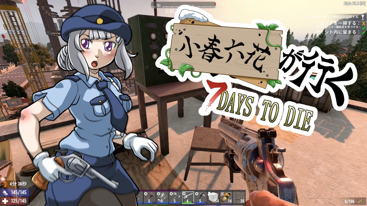 皆さんこんにちは。生アーキルーです。<br>いつもご視聴・広告・コメントありがとうございます。<br><br>お久し振りです。<br>お盆休みから仕事・プライベーと等忙しかったので、<br>しばらくお休みさせて頂いておりました。<br>楽しみにされてた方には申し訳なく思っております。<br><br>休んでいた間、PC環境が変わった関係で、<br>プレイデータが無くなってしまいました。<br>一応今回は復帰後のおまけ回で、色々新規物件を回ろうと思います。<br>次回以降から元のデータと同じ日数まで進めて、<br>そこから投稿する形になるかと思います。<br><br>あ、時間の関係で、今パートは新規立ち絵はありません。<br><br><br><span style="color: #262626;">本動画では「RikeiR」様のα20翻訳修正MODを入れております</span><span style="color: #ff9900;">。</span><br><br>ーーーーーーーーーーーーーーーーーーーーーーーーーーー<br>今シリーズは縛りプレイを入れていきます。<br><br>☆「ティア3以下の回収のみのクエは、回収しかやってはいけない」<br><br>・ゾンビの撃破禁止(セクハラはOK)<br>・武器は石斧のみ<br>・妨害用のアイテムは、ダメージを伴わない木材系のみ<br>(強化も木材のみ)<br>・必ず順路侵入口から入る事<br>(外壁を破壊して侵入・回収は駄目)<br>・回収物を持った状態で、屋外に脱出できればクリア<br>・バフは、食事によるスタミナ上限アップと、コーヒーのみ可<br><br>☆「ティア4以降の回収込みの一掃クエは、上記のルールで回収を行い、<br> 回収完了の判定が出て、初めて戦闘可能となる」<br><br>・一旦脱出はしなくても良い。<br>・戦闘用の武器をベルトに入れたままにしても良い。<br>(但し、回収完了までに使用したらNG)<br><br>☆「電源復旧」のクエも上記のルールで行い、<br>全て復旧できて初めて戦闘可能になります。<br><br>ーーーーーーーーーーーーーーーーーーーーーーーーーーー<br><br><br>ゲーム設定<br>・難易度 遊牧民<br>・ゾンビ 全力疾走<br>・ブラッドムーン 64体<br><br>MAP「PREGEN 6k」<br><br>鬼娘が行く! 7Days To Die(マイリスト)<br><a href="https://www.nicovideo.jp/mylist/66455257" target="_blank" rel="noopener">mylist/66455257</a><br>雪原を葵が行く! 7Days To Die(マイリスト)<br><a href="https://www.nicovideo.jp/mylist/70598018" target="_blank" rel="noopener">mylist/70598018</a><br><br>たまにつぶやいてます<br><a href="https://twitter.com/namaakl" target="_blank" rel="noopener nofollow">https://twitter.com/namaakl</a>
