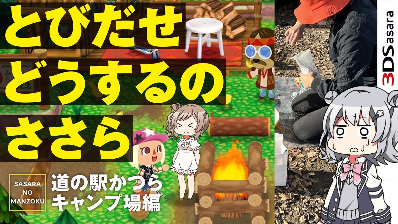 キャンプやってみたいけど、道具も何もない…<br>けど雰囲気だけでも味わってみたくて、<br>無料で利用できるキャンプスペースがある「道の駅かつら」に行ってきました!<br><br>キャンプ、はまりそうです!<br><br>★いいねのお礼は、スタッフが川で水切りに挑戦した際に、石が連続で跳ねた回数です。スタッフのちょっとしたセンスが試される!<br><br>★前回も引き続き動画へのあたたかいコメント・いいね本当にありがとうございます!<br>★そして広告・フォローしてくれた皆様本当にありがとうございます!<br><br>皆様のあたたかいリアクションをいつも喜びにさせていただいております!ありがとうございます!<br><br>----------------------------------------------<br>●関連リンク集<br><br><strong>【なかがわ水遊園】<br>ささらちゃん一行が夏に訪れた動画…</strong><br><a href="https://www.nicovideo.jp/watch/sm41019917" target="_blank" rel="noopener nofollow">https://www.nicovideo.jp/watch/sm41019917</a><br><br><strong>カワイイ!イラストを描く 秘剣つばめ返しさん…</strong><br><a href="https://twitter.com/tsubame_return" target="_blank" rel="noopener nofollow">https://twitter.com/tsubame_return</a><br><br><strong>【ずんずかをご紹介いただいたあるすーかさん】<br>どの動画もおすすめです</strong><br><a href="https://www.nicovideo.jp/user/45279339" target="_blank" rel="noopener nofollow">https://www.nicovideo.jp/user/45279339</a><br><br><strong>ずんずかしていただいた動画…</strong><br><a href="https://www.nicovideo.jp/watch/sm41432478" target="_blank" rel="noopener nofollow">https://www.nicovideo.jp/watch/sm41432478</a><br><br>【ニコニコ動画アワード2022】<br>ぜひ「ささらのまんぞく」で検索&投票いただけると嬉しいです!<br><a href="https://site.nicovideo.jp/premiumaward/" target="_blank" rel="noopener nofollow">https://site.nicovideo.jp/premiumaward/</a><br />【シリーズ一覧】<a href="https://www.nicovideo.jp/user/4064085/series" target="_blank" rel="noopener nofollow">https://www.nicovideo.jp/user/4064085/series</a><br><br>---------------------------------------------------------------------------------------------------------<br><span style="color: #e69138;"><strong>【クワイトのまんぞくさせたい!競馬チャンネル】</strong></span><br>毎週日曜日14:30から2時間半の生放送!<br>スタッフとカメラマンが(たまに)当たったの(ほとんど)はずれたの言ってます<br>コメントくださる方々は神馬券師ですので、そちらはとても参考になります(*'ω'*)<br><a href="https://live.nicovideo.jp/watch/user/4064085" target="_blank" rel="noopener nofollow">https://live.nicovideo.jp/watch/user/4064085</a><br><br>---------------------------------------------------------------------------------------------------------<br><span style="color: #9900ff;"><strong>【Twitter】投稿予定や進捗情報ほかいろいろ</strong></span><br><a href="https://twitter.com/sasara_man" target="_blank" rel="noopener nofollow">https://twitter.com/sasara_man</a><br><br>---------------------------------------------------------------------------------------------------------<br>【オリジナルグッズ】イカちゃんのTシャツやスタンプあります🦑<br>[UP-T]<br><a href="https://up-t.jp/creator/681219e971df2" target="_blank" rel="noopener nofollow">https://up-t.jp/creator/681219e971df2</a><br><br>[LINE STORE](「クワイト イカちゃん」で検索もOK♪)<br><a href="https://store.line.me/stickershop/product/30719060/ja" target="_blank" rel="noopener nofollow">https://store.line.me/stickershop/product/30719060/ja</a>