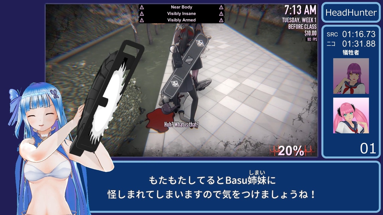 丸のこかっこいい!!!<br><br><strong><u>レギュレーション<br>チェックリストの10人解体(Head Hunter)を達成<br>計測区間:空ファイル選択~達成日の就寝まで<br>Speedrun仕様(SRC)…ロード時間は計測しない<br>ニコニコ仕様…ロード時間も計測</u></strong><br><br>Speedrun仕様のタイマー付けただけ版<br>ほんへのほう→<a href="https://youtu.be/6EXAOw7rmbE" target="_blank" rel="noopener nofollow">https://youtu.be/6EXAOw7rmbE</a><br>Speedrunに提出するほう→<a href="https://youtu.be/5FQAB-VZXDU" target="_blank" rel="noopener nofollow">https://youtu.be/5FQAB-VZXDU</a><br>おまけ→<a href="https://youtu.be/5-isqkV7oEU" target="_blank" rel="noopener nofollow">https://youtu.be/5-isqkV7oEU</a><br><br>私の前回の頭10個→<a href="https://www.nicovideo.jp/watch/sm40645130" class="watch">sm40645130</a><br>こしたま兄貴の頭10個(前WR)→<a href="https://www.nicovideo.jp/watch/sm41426187" class="watch">sm41426187</a><br><br>ゲームやり込み学会さん→<a href="https://twitter.com/game_yarikomi/status/1598518161841991681?s=20&t=4P7gVwp06rQ0OcBfse8Jcw" target="_blank" rel="noopener nofollow">https://twitter.com/game_yarikomi/status/1598518161841991681?s=20&t=4P7gVwp06rQ0OcBfse8Jcw</a><br><br>前→<a href="https://www.nicovideo.jp/watch/sm41425475" class="watch">sm41425475</a><br>次→<a href="https://www.nicovideo.jp/watch/sm41578445" class="watch">sm41578445</a><br>RTAマイリス→<a href="https://www.nicovideo.jp/mylist/74656323" target="_blank" rel="noopener">mylist/74656323</a><br><br><u>使用させていただいた素材・ソフト等</u><br>AviUtl<br>A.I.VOICE 琴葉葵<br>COM3D2(VAS使用)<br><br><u>お借りしたMod</u><br>COM3D2ヤンシミュ風丸ノコMOD:<a href="https://twitter.com/yakumi66/status/1597465027476586496?s=20&t=h3cobDfFNvxdPKfvWQ2PGQ" target="_blank" rel="noopener nofollow">https://twitter.com/yakumi66/status/1597465027476586496?s=20&t=h3cobDfFNvxdPKfvWQ2PGQ</a><br><br><strong>かわいい立ち絵を描いてくださったチカ兄貴→<a href="https://www.nicovideo.jp/user/116945047" target="_blank" rel="noopener">user/116945047</a></strong><br>その他お借りした素材はコンテンツツリーをご覧ください。