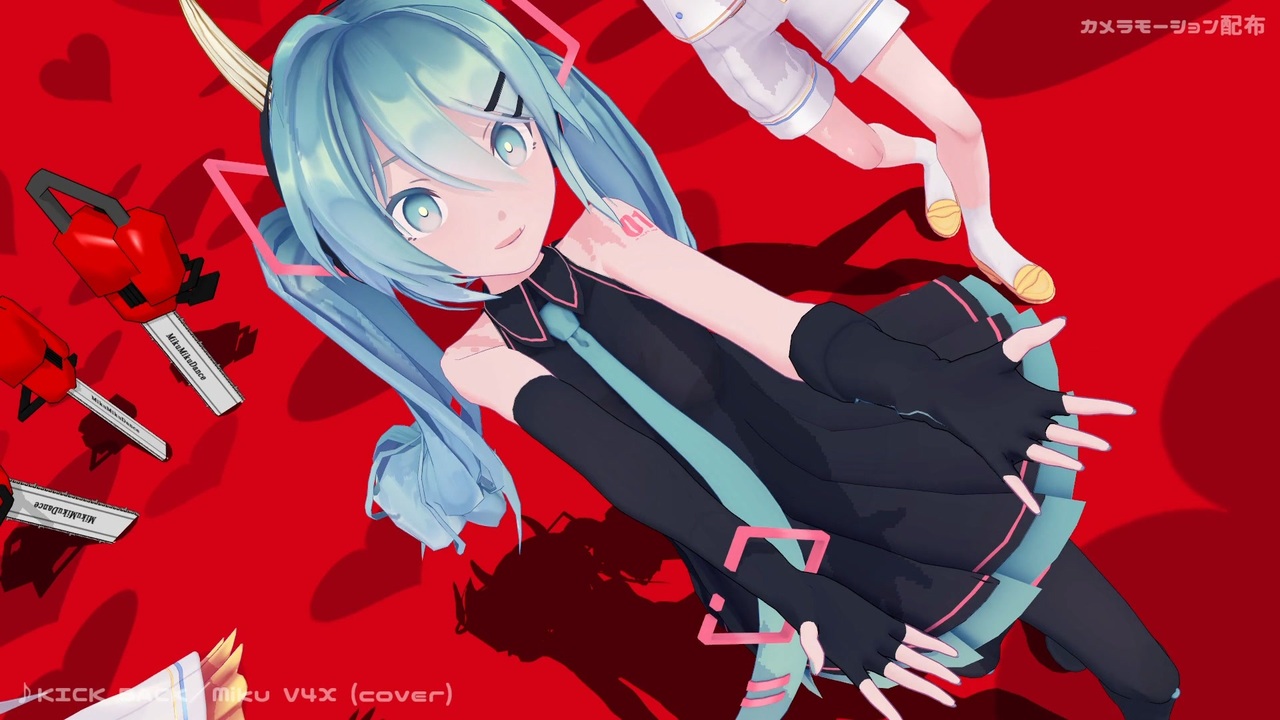 誰だ誰だ頭の中 呼びかける声は<br>あれが欲しいこれが欲しいと歌っている<br><br>今回は人気アニメ「チェンソーマン」のOP「KICK BACK」のカメラ配布です!<br>KAZUSAさんに夜に駆けるのモーションをKICK BACK用に改変して頂きました!<br>本当にありがとうございますm(__)m<br>Staircatteさんのカバー曲に合わせて踊る、魔人になった3人が超カッコいい!<br><br>カメラモーション配布しています。<br>><a href="https://bowlroll.net/file/289689" target="_blank" rel="noopener nofollow">https://bowlroll.net/file/289689</a><br>解凍PWは、この説明文の最初のフレーズです。<br>※音のタイミングは <a href="https://youtu.be/dFlDRhvM4L0" target="_blank" rel="noopener nofollow">https://youtu.be/dFlDRhvM4L0</a> に合わせています。<br><br>ニコニコでカメラ使って頂きました!<br>><a href="https://commons.nicovideo.jp/works/sm41462438/tree/children" target="_blank" rel="noopener nofollow">https://commons.nicovideo.jp/works/sm41462438/tree/children</a><br>YouTubeでカメラ使って頂きました!<br>><a href="https://www.youtube.com/playlist?list=PLC_uSlhOor2j2y_XIzN4_xHwE1P_ut1zH" target="_blank" rel="noopener nofollow">https://www.youtube.com/playlist?list=PLC_uSlhOor2j2y_XIzN4_xHwE1P_ut1zH</a><br><br><strong>ミーネンロイマー様、みるくtea様、KAZUSA様、カマメシ様、ジェット炎様、<br>無重力様、静鈴様、かさね1010様、ハクさん様、不器用ですから様、TEPIA様、<br>イクラえもんD様、沈黙の人様、冴。様、xf108様、Ek様、ハルカ@りっぷさん様、<br>ますたー様、やすらーまん様、SilverRabbit4RL7様、桜田門瑞樹様、<br>Naoki Yamakawa様、radyboy様、五十嵐どうめ様、marudomarudo@マルド様、<br>p_philosophie様、gunmer様、オオシノ様、かーこんパンチ様、iida様、<br>オカノ様、れに様、広告ありがとうございます!</strong><br><span style="font-size: 10px;">ハッピーで埋め尽くしてくれるミー様の広告は最高!</span><br><br>楽曲:米津玄師様<br><a href="https://youtu.be/M2cckDmNLMI" target="_blank" rel="noopener nofollow">https://youtu.be/M2cckDmNLMI</a><br>ミクカバー:Staircatte様<br><a href="https://youtu.be/ok4eTTZQpMw" target="_blank" rel="noopener nofollow">https://youtu.be/ok4eTTZQpMw</a><br>振付:ぬん様(夜に駆ける)<br><a href="https://youtu.be/kYyRsI6csVc" target="_blank" rel="noopener nofollow">https://youtu.be/kYyRsI6csVc</a><br>モーション:KAZUSA様<br><a href="https://youtu.be/Q657Zeay6jE" target="_blank" rel="noopener nofollow">https://youtu.be/Q657Zeay6jE</a><br>モデル:Sour暄様<br>ステージ:ありさと様<br>アクセサリ:キャベツ鉢様/ガンガゼ様<br><br /><span style="color: #0000ff;">カメラモーション配布シリーズ</span>><a href="https://www.nicovideo.jp/series/24541" target="_blank" rel="noopener">series/24541</a><br>ブッとんでいけ!<a href="https://www.nicovideo.jp/watch/sm45781308" class="watch">sm45781308</a> 2025/12/30 配布開始 <span style="color: #ff0000;">New!!</span><br>YouTubeはこちら↓<br>><a href="https://www.youtube.com/playlist?list=PLC_uSlhOor2gzlT7JCXbwJGgxZ00QekiO" target="_blank" rel="noopener nofollow">https://www.youtube.com/playlist?list=PLC_uSlhOor2gzlT7JCXbwJGgxZ00QekiO</a><br><br><span style="color: #ff0000;"><strong>どりーみんチュチュ カメラ配布動画</strong></span><br><span style="color: #ff0000; font-size: 16px;"><strong>YouTubeにて78万再生突破 !!</strong></span><br>><a href="https://youtu.be/EG19VETMBqg" target="_blank" rel="noopener nofollow">https://youtu.be/EG19VETMBqg</a><br><br>カメラ使って頂きました最新情報はこちら!<br>><a href="https://x.com/eichan2222" target="_blank" rel="noopener nofollow">https://x.com/eichan2222</a>