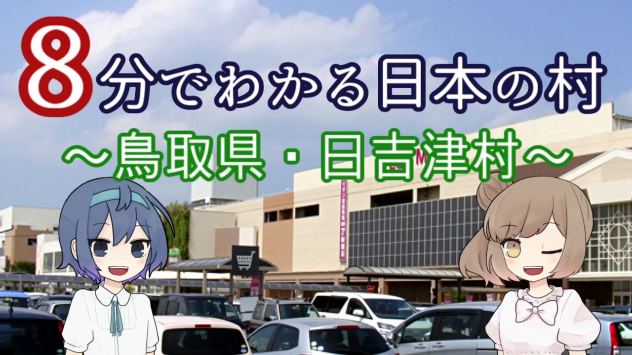 8分でわかる日本の村、略して村8分(?)。<br>CeVIOの<span style="color: #cc0000;"><strong>ささらちゃん</strong></span>と<span style="color: #0b5394;"><strong>つづみちゃん</strong></span>でお送りする、ゆるふわ地理解説動画です。<br><br>*****<br>今回紹介するのは、鳥取県西部に位置する<span style="color: #b45f06;"><strong>「日吉津村」</strong></span>。<br>面積わずか4㎢、ディズニーランド4個分という小さな村ですが、隣接する都市・米子のベッドタウンとして順調に発展。いまでは山陰地方最大といわれる巨大ショッピングモールも立地し、週末には多くの買い物客でにぎわいます。<br><br>…もっとも、このショッピングモールの存在が、いい意味でも悪い意味でも、<br>この地域を大きく変えてしまったのですが…。<br><br><span style="color: #741b47;">★今回もたくさんの広告ありがとうございます!!</span><br><br>●ほかの投稿動画はこちら <a href="https://www.nicovideo.jp/mylist/69024106" target="_blank" rel="noopener">mylist/69024106</a><br>●CeVIOでつくった曲シリーズ <a href="https://www.nicovideo.jp/series/187141" target="_blank" rel="noopener">series/187141</a><br>●8分でわかる日本の村シリーズ <a href="https://www.nicovideo.jp/series/161119" target="_blank" rel="noopener">series/161119</a><br>●シリーズに入れるほどでもないシリーズ <a href="https://www.nicovideo.jp/series/128870" target="_blank" rel="noopener">series/128870</a><br><br>●日吉津村HP <a href="https://www.hiezu.jp/" target="_blank" rel="noopener nofollow">https://www.hiezu.jp/</a>