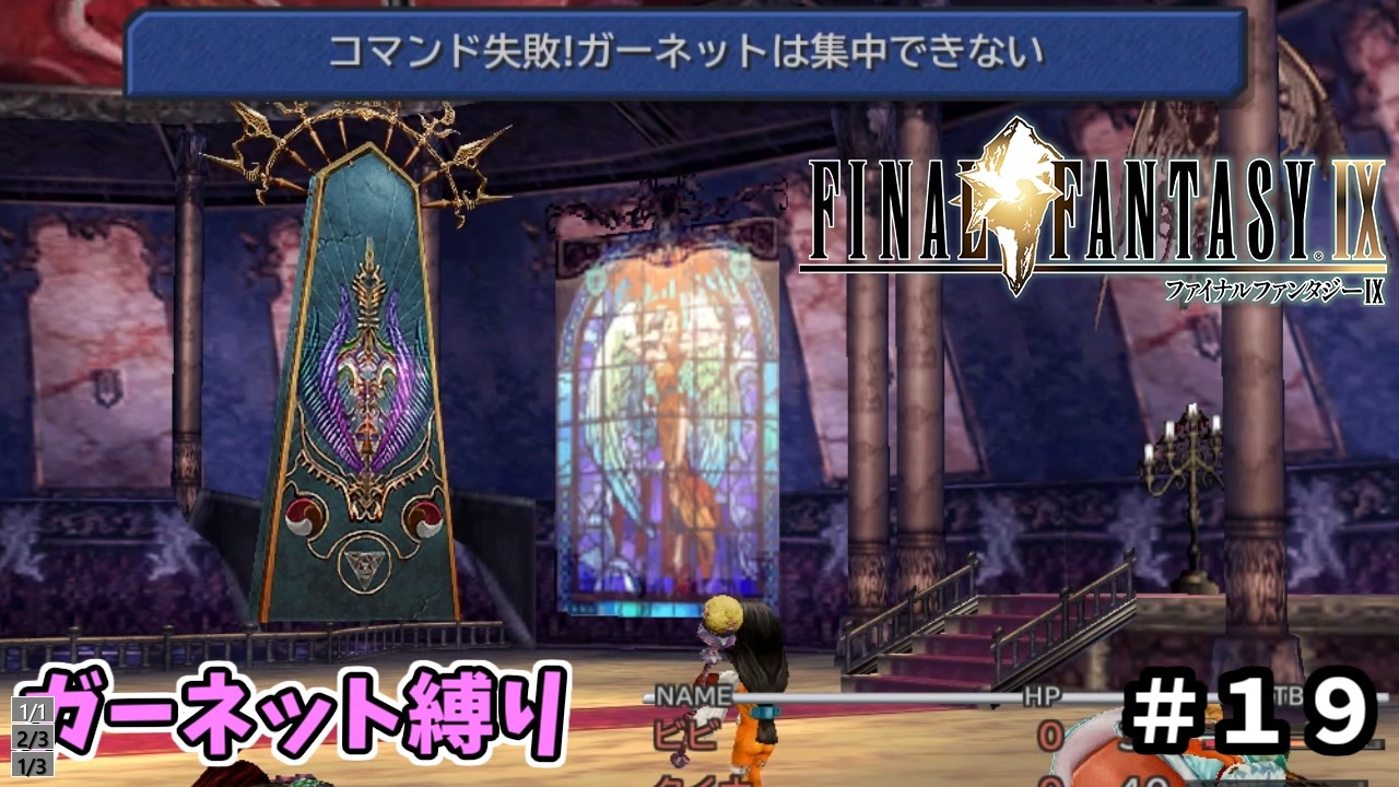 <縛り項目><br><br>壱 ガーネットソロで挑戦(不在時はビビで頑張ろう)<br>弐 なるべく低レベルで攻略(基本Lv1)<br>参 レベルは上げても良いが33回まで(戦闘終了後Lv1に戻す)<br>四 稼ぎ、盗みなどは自由<br>いいねで何の次回予告を使用したか分かります<br><br><span style="font-size: 18px;">角有の縛り</span>⇒<a href="https://www.nicovideo.jp/watch/sm41309216" class="watch">sm41309216</a><br><br>youtube<br><a href="https://www.youtube.com/channel/UCjdaDoUkevvX17CYzlFys_Q" target="_blank" rel="noopener nofollow">https://www.youtube.com/channel/UCjdaDoUkevvX17CYzlFys_Q</a><br><br>今までの縛りプレイのマイリスト<br>FF7クラウド縛り⇒<a href="https://www.nicovideo.jp/watch/sm13893600" class="watch">sm13893600</a><br>コメントで選ばれたキャラFF4ソロ縛り⇒<a href="https://www.nicovideo.jp/watch/sm17759223" class="watch">sm17759223</a><br>FF10キマリ縛り⇒<a href="https://www.nicovideo.jp/watch/sm25368181" class="watch">sm25368181</a><br>再走FF7⇒<a href="https://www.nicovideo.jp/watch/sm36608409" class="watch">sm36608409</a><br>リメイククラウド縛り⇒<a href="https://www.nicovideo.jp/watch/sm37541281" class="watch">sm37541281</a><br>FF7使い捨て縛り⇒<a href="https://www.nicovideo.jp/watch/sm39074816" class="watch">sm39074816</a><br>FF7リメイクユフィ1人旅⇒<a href="https://www.nicovideo.jp/watch/sm38873691" class="watch">sm38873691</a><br>FF10禁句縛り⇒<a href="https://www.nicovideo.jp/watch/sm39734539" class="watch">sm39734539</a><br><br>FFの謎を調べる企画<br>最強のロンゾ族編⇒<a href="https://www.nicovideo.jp/watch/sm39620136" class="watch">sm39620136</a><br><br>たまに生放送で稼ぎなどしてます<br>生放送⇒co3029417<br>動画更新告知、生放送などの情報はツイッターで!<br><a href="https://twitter.com/dhuerunahito" target="_blank" rel="noopener nofollow">https://twitter.com/dhuerunahito</a><br><br>© 2000, 2019 SQUARE ENIX CO., LTD. All Rights Reserved. <br>LOGO ILLUSTRATION:© 2000 YOSHITAKA AMANO