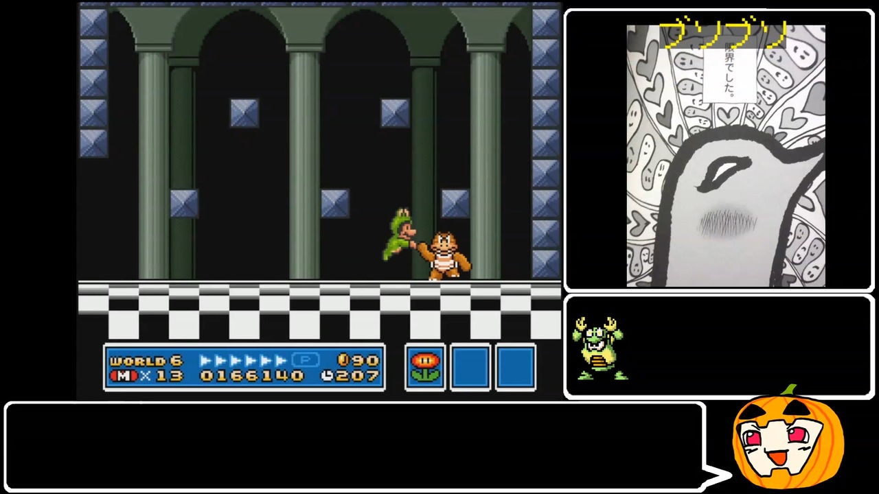 マリコレ版マリオ3を(大体)カエルでクリアするという趣旨の動画です。<br>W1: <a href="https://www.nicovideo.jp/watch/sm41361243" class="watch">sm41361243</a><br>W2: <a href="https://www.nicovideo.jp/watch/sm41385946" class="watch">sm41385946</a><br>W3: <a href="https://www.nicovideo.jp/watch/sm41411716" class="watch">sm41411716</a><br>W4: <a href="https://www.nicovideo.jp/watch/sm41436444" class="watch">sm41436444</a><br>W5: <a href="https://www.nicovideo.jp/watch/sm41465589" class="watch">sm41465589</a><br>W6: ココ<br>W7: <a href="https://www.nicovideo.jp/watch/sm41494720" class="watch">sm41494720</a><br>W8: <a href="https://www.nicovideo.jp/watch/sm41523233" class="watch">sm41523233</a><br><br>配信アーカイブ: <a href="https://youtu.be/nWKmz8Itv58" target="_blank" rel="noopener nofollow">https://youtu.be/nWKmz8Itv58</a><br><br>ガバガバなルール<br>・全ステージカエルでクリアする<br>・カエルでどうしようもないステージはすぐ諦める(しゃがみ必須、しっぽ必須、スター間に合わないとか)<br>・通しクリアではなくステージクリア目標なので、ステージごとにどこでもセーブ使う(ステージ操作開始後は使わない<br>・RTAではないので再走はしない(重要)<br>・苦行はしない(重要)