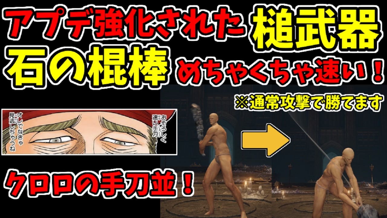 App Ver. 1.08 Regulation Ver. 1.08<br>最新アプデで強化された槌武器で一番オススメ!<br>斧カテゴリの鉄の鉈もモーション同じで強いです!<br>アプデ内容⇒<a href="https://www.eldenring.jp/newsdetail/news_detail_221207_1.html" target="_blank" rel="noopener nofollow">https://www.eldenring.jp/newsdetail/news_detail_221207_1.html</a><br><strong>高画質</strong>⇒<a href="https://www.youtube.com/watch?v=Spe0hX121rA" target="_blank" rel="noopener nofollow">https://www.youtube.com/watch?v=Spe0hX121rA</a><br><br>YouTube⇒<a href="https://www.youtube.com/channel/UC4BkylcNgiMoFvpYPpcZEEw" target="_blank" rel="noopener nofollow">https://www.youtube.com/channel/UC4BkylcNgiMoFvpYPpcZEEw</a><br>Twitter⇒<a href="https://twitter.com/0141ktkr" target="_blank" rel="noopener nofollow">https://twitter.com/0141ktkr</a>