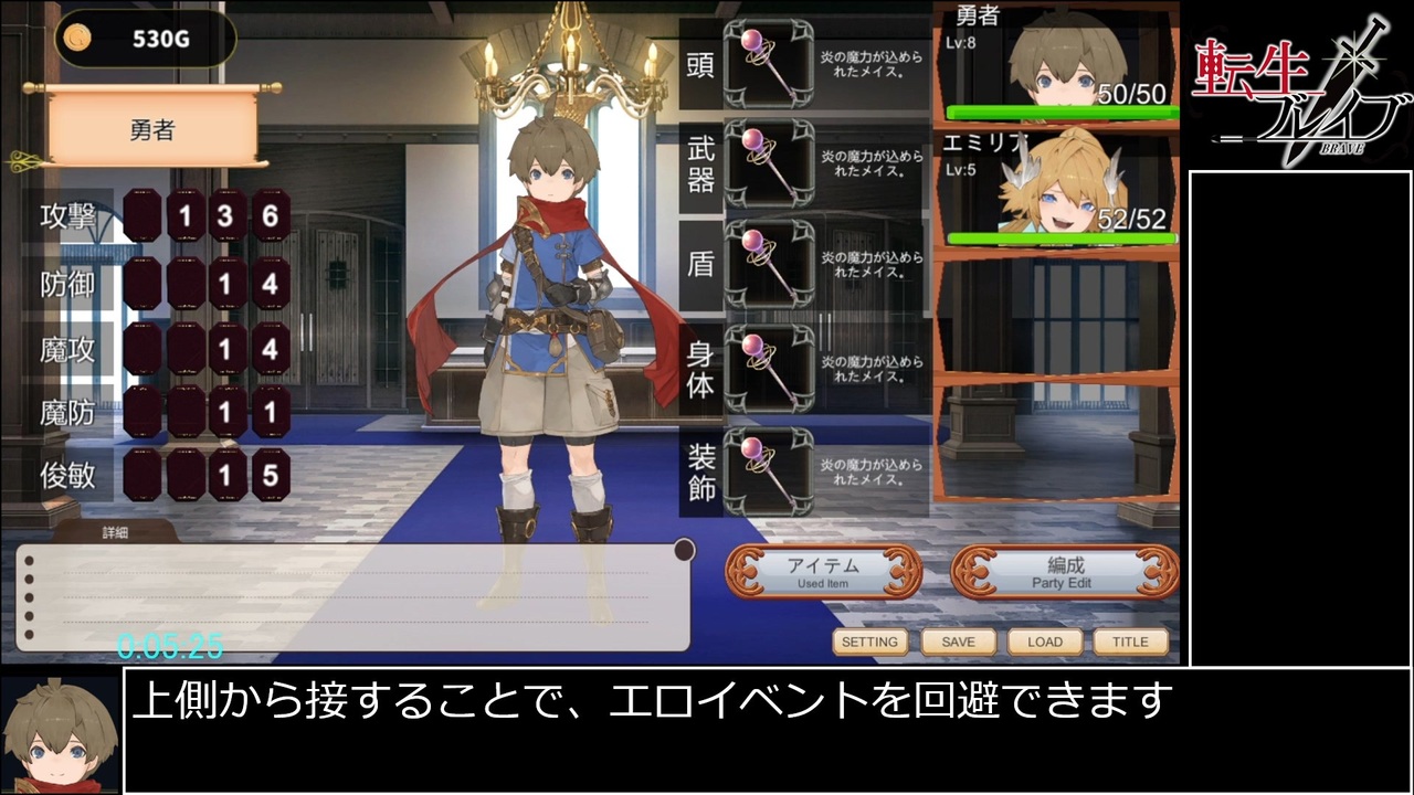 転生ブレイブのRTAです<br>カテゴリー名はAny% ver1.0.6 Glitched になると思います<br><br>2023年1月1日まで10%オフセール中!!<br><a href="https://www.dlsite.com/maniax/work/=/product_id/RJ338222.html" target="_blank" rel="noopener nofollow">https://www.dlsite.com/maniax/work/=/product_id/RJ338222.html</a><br><br><br>機種:PC<br>タイマースタート:はじめから選択時<br>タイマーストップ:エンディングが始まったら<br><br><br>パート2→<a href="https://www.nicovideo.jp/watch/sm41506090" class="watch">sm41506090</a><br /><br><br><span style="color: #000000; font-size: 13px;">投稿した動画一覧<br><a href="https://www.nicovideo.jp/mylist/65665024" target="_blank" rel="noopener">mylist/65665024</a></span><br><br>Twitter<br><a href="https://twitter.com/sitake1010" target="_blank" rel="noopener nofollow">https://twitter.com/sitake1010</a><br><br>普段の配信場所<br><a href="https://www.twitch.tv/sitake1010" target="_blank" rel="noopener nofollow">https://www.twitch.tv/sitake1010</a>