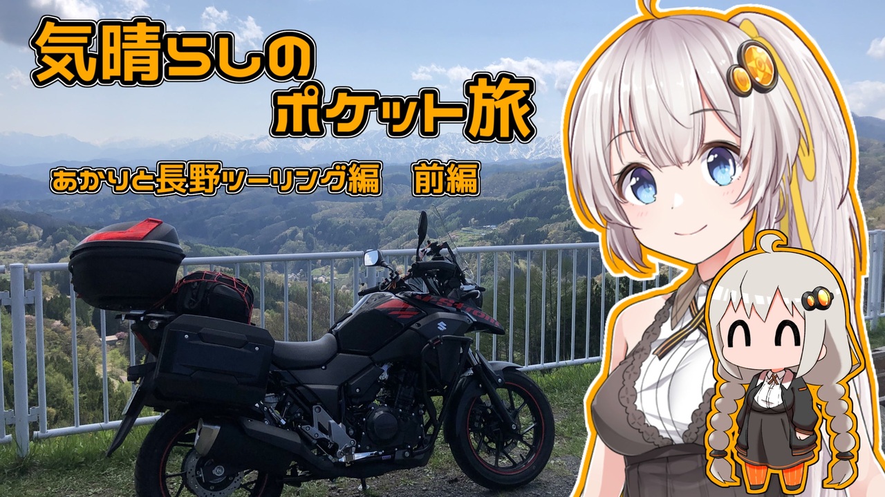 気晴らしのポケット旅 あかりと長野ツーリング編 前編<br><br>ご視聴頂きありがとうございます!<br>今回は長野へのツーリング動画になります!<br>奈良から長野へそして戸隠周辺の散策の様子を動画にしました!<br><br>撮影は2022年のゴールデンウイークになります!<br><br>そしてリスペクトを快諾して下さった<br>ふぁーれんさんの動画のシリーズです!<br><a href="https://www.nicovideo.jp/user/971438/video" target="_blank" rel="noopener nofollow">https://www.nicovideo.jp/user/971438/video</a><br><br><br>ほとんど呟かないTwitter<br><a href="https://mobile.twitter.com/fireball0126" target="_blank" rel="noopener nofollow">https://mobile.twitter.com/fireball0126</a><br><br>YouTubeの動画リスト<br><a href="https://www.youtube.com/channel/UCt9l0esvO_VXK30BHqKQoVg/videos" target="_blank" rel="noopener nofollow">https://www.youtube.com/channel/UCt9l0esvO_VXK30BHqKQoVg/videos</a><br><br>お借りした一覧<br><br>立ち絵<br><br>紲星あかり <br>デフォルメノシバン こんにゃく様<br><br>デフォルメ dairi&はるか様<br><br>編集ソフト等<br><br>AviUtl<br>PSDToolKit<br>SoTtalk<br>ペイントツールSAI<br><br><br><br>前回><a href="https://www.nicovideo.jp/watch/sm41344061" class="watch">sm41344061</a><br>次回><a href="https://www.nicovideo.jp/watch/sm41538286" class="watch">sm41538286</a><br>マイリスト><a href="https://www.nicovideo.jp/mylist/64925619" target="_blank" rel="noopener">mylist/64925619</a><br>