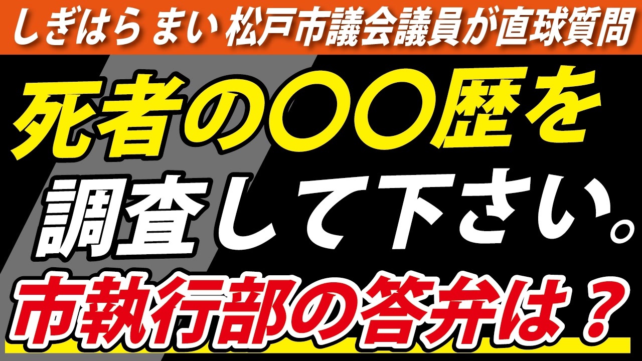 2022.12.12 松戸市会議 鴫原舞市議の一般質問の話です。<br><br>❑松戸市議会 議会中継<br><a href="https://smart.discussvision.net/smart/tenant/matsudo/WebView/rd/speech.html?year=2022&council_id=38&schedule_id=4&playlist_id=0&speaker_id=0" target="_blank" rel="noopener nofollow">https://smart.discussvision.net/smart/tenant/matsudo/WebView/rd/speech.html?year=2022&council_id=38&schedule_id=4&playlist_id=0&speaker_id=0</a><br><br>❑3月、藤江が市役所に電話した記録<br><a href="https://youtu.be/PKiUiDnV9gY" target="_blank" rel="noopener nofollow">https://youtu.be/PKiUiDnV9gY</a><br><br>―――――――――――――――――――――――――――――――<br><br>❑12月18日 参政党での講義 詳細・申し込みはこちら<br><a href="https://docs.google.com/forms/d/e/1FAIpQLSdfddUZqjI4UlQDK4ElhAUAzEAEyJAhpRNhmrdAKRYi5LqPbA/viewform" target="_blank" rel="noopener nofollow">https://docs.google.com/forms/d/e/1FAIpQLSdfddUZqjI4UlQDK4ElhAUAzEAEyJAhpRNhmrdAKRYi5LqPbA/viewform</a><br><br>※参政党HP(参政党に参加する)<br><a href="https://www.sanseito.jp/participation/" target="_blank" rel="noopener nofollow">https://www.sanseito.jp/participation/</a><br><br>―――――――――――――――――――――――――――――――<br><br>❑12月17日(土)20時~ ライブ配信します。<br><a href="https://nicochannel.jp/fujie/" target="_blank" rel="noopener nofollow">https://nicochannel.jp/fujie/</a><br>(ニコニコチャンネル+)<br><br>―――――――――――――――――――――――――――――――<br><br>❏藤江の活動を支援していただける方向け<br>【藤江支援口座】のご案内<br>住信SBIネット銀行 ミカン支店(店番号103)<br>口座番号 3107694<br>口座名義 フジエ マサミツ<br><br>――――――――――――――――――――――――――――――<br><br>日本の人口増加を目指す男、藤江です!【メインチャンネル】<br><a href="https://www.youtube.com/c/JINKOUZOUKA/" target="_blank" rel="noopener nofollow">https://www.youtube.com/c/JINKOUZOUKA/</a><br><br>今こそ!三千年の底力【藤江3rdチャンネル】<br><a href="https://www.youtube.com/channel/UC5Yrsm8-X8nZj4uKgvE7CBw" target="_blank" rel="noopener nofollow">https://www.youtube.com/channel/UC5Yrsm8-X8nZj4uKgvE7CBw</a><br><br>四海兄弟【藤江4thチャンネル】<br><a href="https://www.youtube.com/channel/UCiyJNO57quj80Ysy7nOABvA" target="_blank" rel="noopener nofollow">https://www.youtube.com/channel/UCiyJNO57quj80Ysy7nOABvA</a><br><br>藤江のTwitter<br><a href="https://twitter.com/JINKOUZOUKA_jp" target="_blank" rel="noopener nofollow">https://twitter.com/JINKOUZOUKA_jp</a>