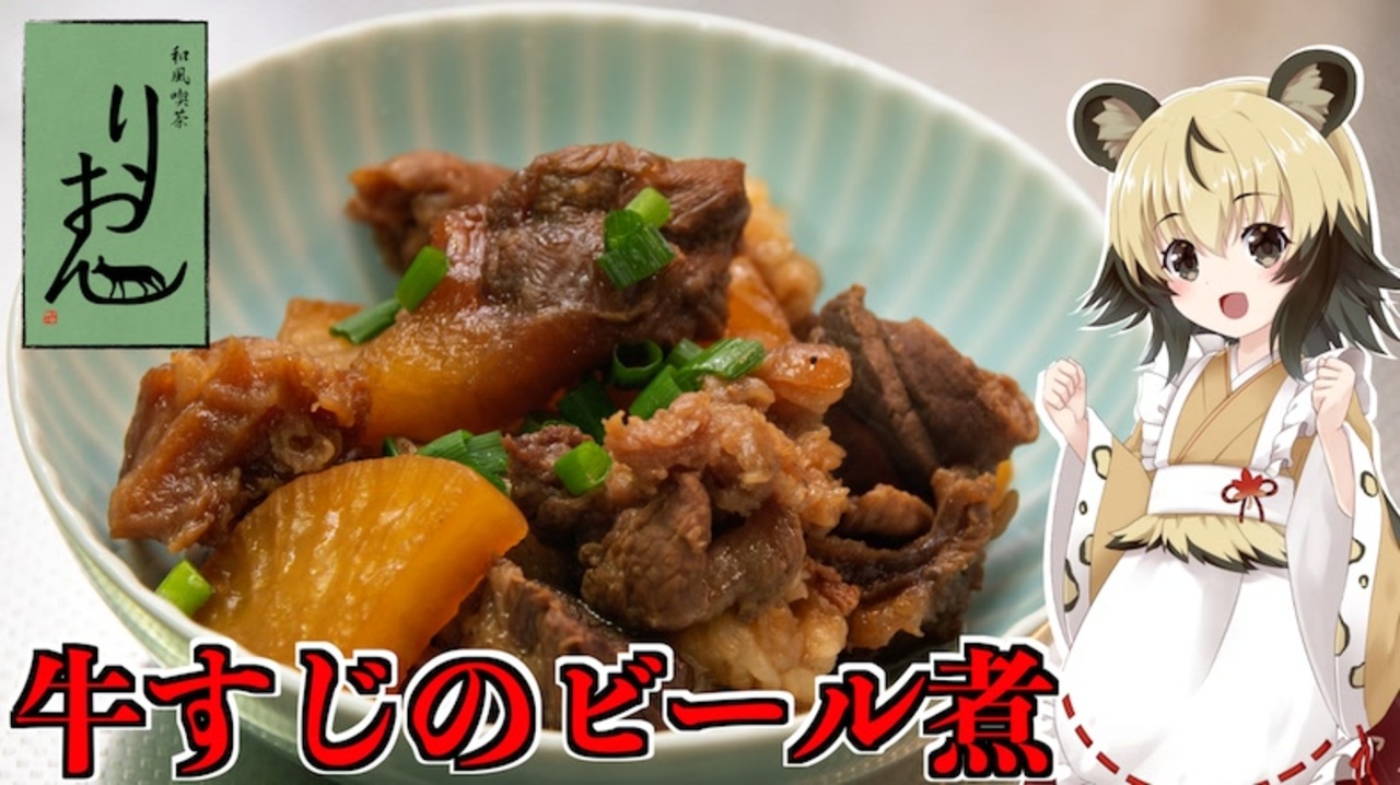 今回は、「牛すじのビール煮」を作っていきましょう!<br><br>ビールをいただいたのですが飲みきれなかったので、<br>料理に使って消費していきましょう!<br><br>時間はかかりますが、煮込むだけなので、<br>ゆっくりとできるまでの時間も楽しみましょうね。<br><br>以前作った「牛すじのどて煮(<a href="https://youtu.be/SNZrT1CTAcg" target="_blank" rel="noopener nofollow">https://youtu.be/SNZrT1CTAcg</a> )」と材料は似たようなものですが、<br>よりシンプルな味付けなので、たくさん作った時はカレーやうどんなどに合わせても美味しいですよ!<br><br>■材料<br>・牛すじ 250g<br>・大根 80g<br>・こんにゃく 80g<br>・小ネギ お好みで<br>・ビール 350mL<br>・砂糖 大さじ2<br>・醤油 40mL<br><br><br>■所要時間<br>作業時間:60分<br><br><br>youtube:<a href="https://youtu.be/ga1A06g7t8E" target="_blank" rel="noopener nofollow">https://youtu.be/ga1A06g7t8E</a><br>twitter:@lycaon_kitchen<br><br>りおんの和風喫茶:<a href="https://www.nicovideo.jp/series/77190" target="_blank" rel="noopener">series/77190</a><br>おつかれごはん:<a href="https://www.nicovideo.jp/series/155690" target="_blank" rel="noopener">series/155690</a><br>手作り和菓子でちょっとひとやすみしませんか?:<a href="https://www.nicovideo.jp/series/155691" target="_blank" rel="noopener">series/155691</a><br><br>立ち絵:星華 彩二魔 様<br>イラスト:いらすとや、AWD kitchen<br>音源:DOVA-SYNDROME<br>音声:AI VOICE2紲星あかり + exVOICE<br>