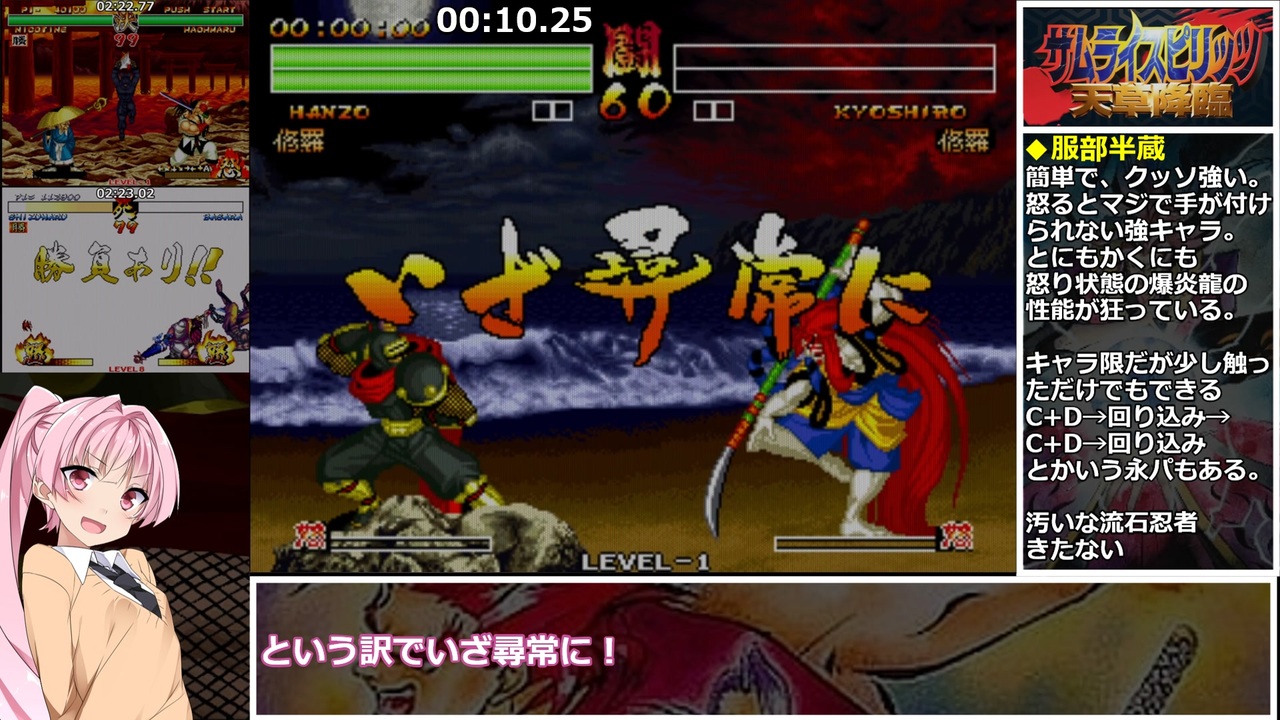 <span style="color: #ff0000; font-size: 18px;"><strong>RTAとは 完走することと見つけたり<br>チャートには 守られることと見つけたり<br>我、オリチャーをもちて <br>先駆者のすべてを</strong></span><br><br><span style="color: #ff0000; font-size: 24px;"><strong>斬る!!</strong></span><br><br><br><span style="color: #ff0000;"><strong>我、即ち初投稿也</strong></span><br><br>因みにネオジオコレクションはアーケード版基準なので、<br>斬紅郎無双剣の天草の小足が強かったり<br>天草降臨で斬紅郎やチャムチャムが使えず<br>零スペの炎邪で界王拳が気兼ねなく使えます<br><br>動作環境:PC(Steamのネオジオコレクション版)<br>操作:レトロフリーク用アーケードスティック<br>レギュレーション:Arcade Mode - Beginner Class - LEVEL 1<br><br>いままでにつくったもの → <a href="https://www.nicovideo.jp/mylist/67805661" target="_blank" rel="noopener">mylist/67805661</a>