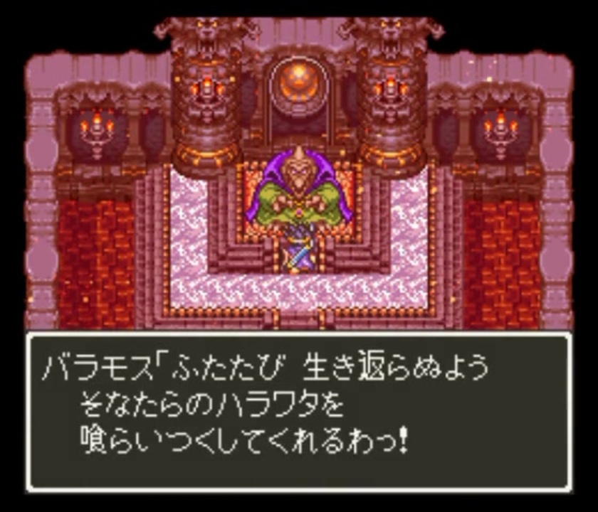 【TAS】SFC版ドラクエ3_1人旅&最少戦闘勝利数クリア_Part4<br><br>時間:20分27秒(合計:1時間21分40秒)<br>追記回数:3786回(合計:15350回)<br>ソフト:スーパーファミコン版 ドラゴンクエストⅢ -そして伝説へ-<br><br><br>SFC版ドラゴンクエスト3で1人旅のTAS動画を作ってみました。<br>ダメージ計算したところ、理論上はボス敵から得られる経験値だけで十分クリア可能でしたので、<br>1人旅&最少戦闘勝利数クリアの縛りで挑んでみました。<br>アイテム増殖技などの裏技は使わずにクリアします。<br>バークに商人を預ける必要事が必須なので一瞬だけ商人をパーティに加えますが、これ以外はずっと1人旅です。<br><br>動画は、ゾーマを倒すまでを5パートに分けて配信します。<br>是非お楽しみ頂ければと思います。<br><br>Part4は、ラーミア復活、バラモスと決戦、そしてアレフガルドを冒険します。<br>-------------------------------------<br>Part1<br><a href="https://www.nicovideo.jp/watch/sm41517615" class="watch">sm41517615</a><br><br>Part2<br><a href="https://www.nicovideo.jp/watch/sm41517636" class="watch">sm41517636</a><br><br>Part3<br><a href="https://www.nicovideo.jp/watch/sm41517685" class="watch">sm41517685</a><br><br>Part5 1月4日投稿予約済み<br><a href="https://www.nicovideo.jp/watch/sm41517771" class="watch">sm41517771</a><br>-------------------------------------<br><br>当動画はユーチューブでも上げています<br><a href="https://youtu.be/ddDC5SlMCaY" target="_blank" rel="noopener nofollow">https://youtu.be/ddDC5SlMCaY</a><br><br>この動画で利用している株式会社スクウェア・エニックスを代表とする共同著作者が権利を所有する著作物及びスギヤマ工房有限会社が権利を所有する楽曲の転載・配布は禁止いたします。<br>© 1996 ARMOR PROJECT/BIRD STUDIO/HEART BEAT/SQUARE ENIX All Rights Reserved.<br>© SUGIYAMA KOBO