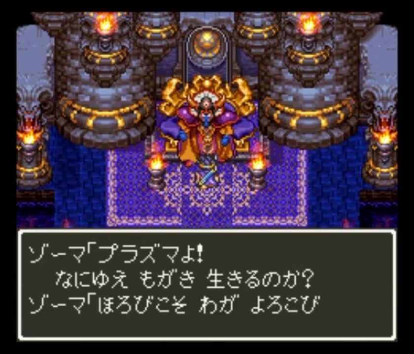 【TAS】SFC版ドラクエ3_1人旅&最少戦闘勝利数クリア_Part5<br><br>時間:17分18秒(合計:1時間38分58秒)<br>追記回数:3284回(合計:18634回)<br>ソフト:スーパーファミコン版 ドラゴンクエストⅢ -そして伝説へ-<br><br><br>SFC版ドラゴンクエスト3で1人旅のTAS動画を作ってみました。<br>ダメージ計算したところ、理論上はボス敵から得られる経験値だけで十分クリア可能でしたので、<br>1人旅&最少戦闘勝利数クリアの縛りで挑んでみました。<br>アイテム増殖技などの裏技は使わずにクリアします。<br>バークに商人を預ける必要事が必須なので一瞬だけ商人をパーティに加えますが、これ以外はずっと1人旅です。<br><br>動画は、ゾーマを倒すまでを5パートに分けて配信します。<br>是非お楽しみ頂ければと思います。<br><br>Part5は、いよいよゾーマ城へ乗り込みます。いつもより2倍もHPを残して最終決戦に挑みました。<br>-------------------------------------<br>Part1<br><a href="https://www.nicovideo.jp/watch/sm41517615" class="watch">sm41517615</a><br><br>Part2<br><a href="https://www.nicovideo.jp/watch/sm41517636" class="watch">sm41517636</a><br><br>Part3<br><a href="https://www.nicovideo.jp/watch/sm41517685" class="watch">sm41517685</a><br><br>Part4<br><a href="https://www.nicovideo.jp/watch/sm41517738" class="watch">sm41517738</a><br><br>Part6 2月3日投稿予約済み<br><a href="https://www.nicovideo.jp/watch/sm41681498" class="watch">sm41681498</a><br>-------------------------------------<br><br>当動画はユーチューブでも上げています<br><a href="https://youtu.be/yNgqkSLp6m0" target="_blank" rel="noopener nofollow">https://youtu.be/yNgqkSLp6m0</a><br><br>この動画で利用している株式会社スクウェア・エニックスを代表とする共同著作者が権利を所有する著作物及びスギヤマ工房有限会社が権利を所有する楽曲の転載・配布は禁止いたします。<br>© 1996 ARMOR PROJECT/BIRD STUDIO/HEART BEAT/SQUARE ENIX All Rights Reserved.<br>© SUGIYAMA KOBO