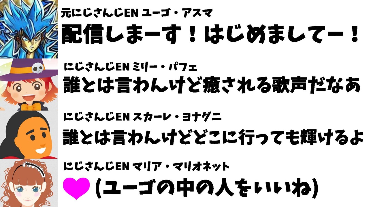 2022年12月14日、にじさんじ・にじさんじENを運営するエニーカラー株式会社公式ツイッターよりにじさんじEN所属のVTuberのユーゴ・アスマさんが本日付で卒業していたと発表されました。<br>日本時間12月18日午前0時、公然の秘密だったユーゴさんの中の人が配信を始めたのですが・・・<br><br>前回の動画<br>【速報】にじさんじENユーゴ、内外の問題ですでに卒業していた<br><a href="https://www.nicovideo.jp/watch/sm41505800" class="watch">sm41505800</a><br><br>引用<br><a href="https://twitter.com/MillieParfait/status/1604140243392806914" target="_blank" rel="noopener nofollow">https://twitter.com/MillieParfait/status/1604140243392806914</a><br><br>Youtube <a href="https://www.youtube.com/channel/UCzYQPx8MeE99DUkW9Y_txJw" target="_blank" rel="noopener nofollow">https://www.youtube.com/channel/UCzYQPx8MeE99DUkW9Y_txJw</a><br>twitter <a href="https://twitter.com/V_Virgin_Mary" target="_blank" rel="noopener nofollow">https://twitter.com/V_Virgin_Mary</a><br><br>使用素材<br>高品質なフリー動画素材 - Pixabay <a href="https://pixabay.com/ja/videos" target="_blank" rel="noopener nofollow">https://pixabay.com/ja/videos</a>