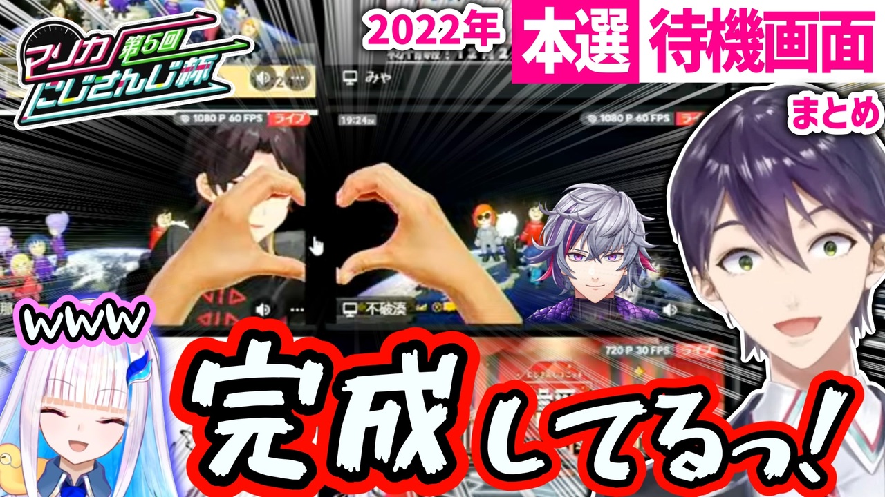◆予選→<a href="https://www.nicovideo.jp/watch/sm41495966" class="watch">sm41495966</a><br><br>第5回(2022年)マリカにじさんじ杯の本選(決勝リーグ)の待機画面でアピール合戦するライバーへツッコミ続ける剣持刀也とリゼ・ヘルエスタの様子まとめです<br><br>運営視点<br>【マリオカート8DX】第5回マリオカートにじさんじ杯 本戦【#マリカにじさんじ杯】<br><a href="https://youtu.be/w2CALoGY5Eo" target="_blank" rel="noopener nofollow">https://youtu.be/w2CALoGY5Eo</a><br><br>《主催》<br>剣持刀也:<a href="https://t.co/dNfUPFBBch?amp=1" target="_blank" rel="noopener nofollow">https://t.co/dNfUPFBBch?amp=1</a><br><br>司会代打 リゼ・ヘルエスタ:<a href="https://www.youtube.com/channel/UCZ1xuCK1kNmn5RzPYIZop3w" target="_blank" rel="noopener nofollow">https://www.youtube.com/channel/UCZ1xuCK1kNmn5RzPYIZop3w</a><br><br><a href="#" class="seekTime" data-seekTime="0:00" onclick="seekNicoPlayer('#0:00'); return false;">#0:00</a> 準々決勝Aリーグ<br>(アルス・アルマル、アンジュ・カトリーナ、イブラヒム、葛葉、来栖夏芽、笹木咲、春崎エアル、フレン・E・ルスタリオ、不破湊、ベルモンド・バンデラス、本間ひまわり、ラトナ・プティ)<br><br><a href="#" class="seekTime" data-seekTime="5:27" onclick="seekNicoPlayer('#5:27'); return false;">#5:27</a> 準々決勝Bリーグ<br>(卯月コウ、エクス・アルビオ、甲斐田晴、セラフ・ダズルガーデン、空星きらめ、長尾景、風楽奏斗、星川サラ、先斗寧、魔使マオ、竜胆尊、渡会雲雀)<br><br><a href="#" class="seekTime" data-seekTime="10:26" onclick="seekNicoPlayer('#10:26'); return false;">#10:26</a> 準々決勝Cリーグ<br>(天宮こころ、家長むぎ、小野町春香、叶、シェリン・バーガンディ、白雪巴、成瀬鳴、葉加瀬冬雪、魔界ノりりむ、夕陽リリ、夜見れな)<br><br><a href="#" class="seekTime" data-seekTime="15:01" onclick="seekNicoPlayer('#15:01'); return false;">#15:01</a> 準々決勝Dリーグ<br>(愛園愛美、北小路ヒスイ、剣持刀也、三枝明那、鷹宮リオン、奈羅花、花畑チャイカ、社築、山神カルタ、レオス・ヴィンセント、ローレン・イロアス)<br><br><a href="#" class="seekTime" data-seekTime="20:05" onclick="seekNicoPlayer('#20:05'); return false;">#20:05</a> 準決勝Aリーグ<br>(葛葉、不破湊、本間ひまわり、渡会雲雀、竜胆尊、風楽奏斗、シェリン・バーガンディ、成瀬鳴、天宮こころ、三枝明那、レオス・ヴィンセント、山神カルタ)<br><br><a href="#" class="seekTime" data-seekTime="25:14" onclick="seekNicoPlayer('#25:14'); return false;">#25:14</a> 準決勝Bリーグ<br>(イブラヒム、春崎エアル、フレン・E・ルスタリオ、長尾景、星川サラ、甲斐田晴、叶、小野町春香、夜見れな、ローレン・イロアス、社築、愛園愛美)<br><br><a href="#" class="seekTime" data-seekTime="30:07" onclick="seekNicoPlayer('#30:07'); return false;">#30:07</a> 決勝リーグ<br>(シェリン・バーガンディ、春崎エアル、葛葉、イブラヒム、本間ひまわり、フレン・E・ルスタリオ、三枝明那、社築、レオス・ヴィンセント、ローレン・イロアス、渡会雲雀、甲斐田晴)<br><br>#にじさんじ切り抜き #にじさんじ