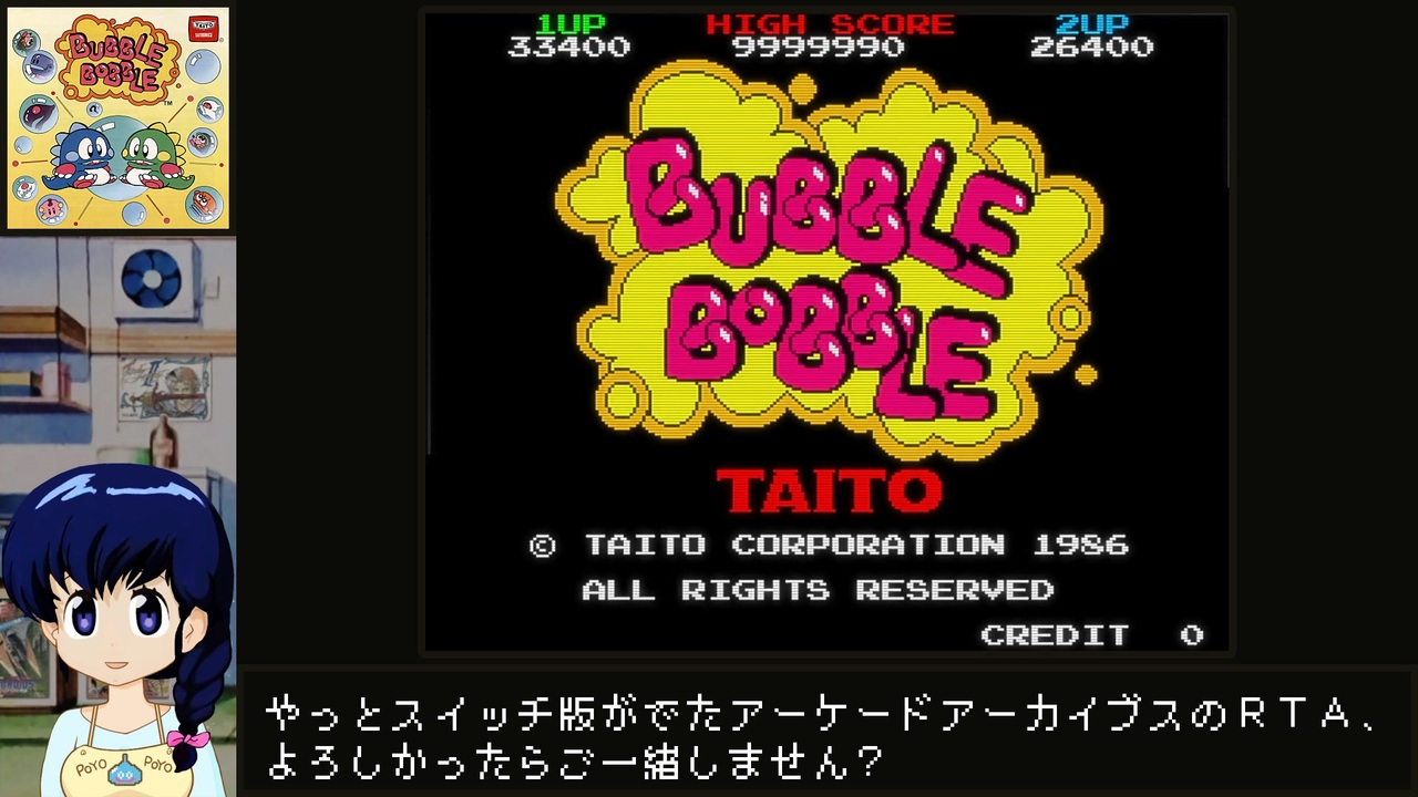 やっとSwitch版が‥。<br>ってことで、約束通り【コマンドなし】で走ってみました! <br> <br><span style="font-size: 14px;">前回の動画 (NewGame+) <a href="https://www.nicovideo.jp/watch/sm38202662" class="watch">sm38202662</a></span><br><br><span style="color: #93c47d;">//参考文献 </span><br>昭和の?な歌 (Round36) <a href="https://www.nicovideo.jp/watch/nm14787925" class="watch">nm14787925</a> <br><br><span style="color: #6fa8dc;">//バブルボブル(アーケードアーカイブス版)</span><br>Switch: <a href="http://www.hamster.co.jp/arcadearchives/switch/bubble.htm" target="_blank" rel="noopener nofollow">http://www.hamster.co.jp/arcadearchives/switch/bubble.htm</a><br>PS4: <a href="http://www.hamster.co.jp/arcadearchives/bubble.htm" target="_blank" rel="noopener nofollow">http://www.hamster.co.jp/arcadearchives/bubble.htm</a><br /> <br><br><span style="color: #e69138;">//共通説明文てすと</span><br><span style="color: #ff00ff;"><strong>【New!】</strong></span>F-ZERO RTA:<a href="https://www.nicovideo.jp/watch/sm45660939" class="watch">sm45660939</a><br>【New!】Romancing Sa・Ga2:<a href="https://www.nicovideo.jp/watch/sm44400984" class="watch">sm44400984</a> <br>【New!】らんま½爆烈乱闘篇RTA (WR):<a href="https://www.nicovideo.jp/watch/sm44178414" class="watch">sm44178414</a>(デバイス制限対策版: <a href="https://www.nicovideo.jp/watch/sm44432134" class="watch">sm44432134</a>)<br>【New!】スーパーファミスタRTA:<a href="https://www.nicovideo.jp/watch/sm43890432" class="watch">sm43890432</a><br>【New!】ファミコンRTA落とし穴可視化用アイコン:<a href="https://seiga.nicovideo.jp/seiga/im11438499" target="_blank" rel="noopener">im11438499</a>(←5月23日以降に投稿したのは消えちゃったぽい...?)<br><br>【直撮り】ブラウン管テレビでファミコンする管理人さん:<a href="https://www.nicovideo.jp/series/423780" target="_blank" rel="noopener">series/423780</a><br>【ミンサガ】RTAとか:<a href="https://www.nicovideo.jp/series/416017" target="_blank" rel="noopener">series/416017</a><br>【WS版FF2】RTA:<a href="https://www.nicovideo.jp/series/426767" target="_blank" rel="noopener">series/426767</a><br>【DEAD OR ALIVE】RTA:<a href="https://www.nicovideo.jp/series/79228" target="_blank" rel="noopener">series/79228</a><br>【バブルボブル】RTA:<a href="https://www.nicovideo.jp/series/366167" target="_blank" rel="noopener">series/366167</a><br><span style="font-size: 14px;">【アーケードアーカイブス】</span>RTA:<a href="https://www.nicovideo.jp/series/79229" target="_blank" rel="noopener">series/79229</a>