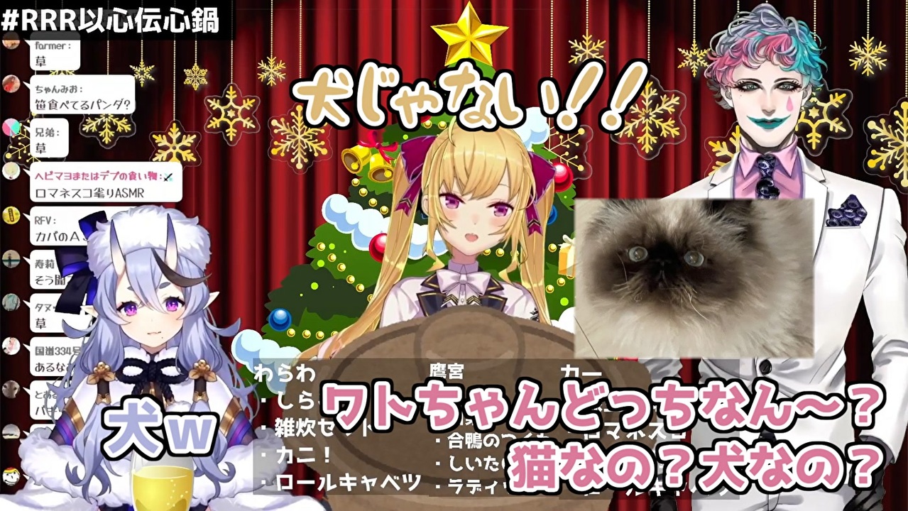 ワトちゃん犬だったのねアンタ!<br>俺ァずっとたぬきだと思ってたよ<br><br>本家参考動画<br>・鷹宮リオン<br>【オフコラボ】RRRで闇鍋!? #RRR以心伝心鍋 【にじさんじ/鷹宮リオン ジョー・力一 竜胆尊】<br><a href="https://youtu.be/TuQn32eqfDE" target="_blank" rel="noopener nofollow">https://youtu.be/TuQn32eqfDE</a><br><br>参考元チャンネル&Twitter<br>・鷹宮リオン<br><a href="https://www.youtube.com/@TakamiyaRion" target="_blank" rel="noopener nofollow">https://www.youtube.com/@TakamiyaRion</a><br><a href="https://twitter.com/TakamiyaRion" target="_blank" rel="noopener nofollow">https://twitter.com/TakamiyaRion</a><br>・ジョー・力一<br><a href="https://www.youtube.com/@JoeRikiichi" target="_blank" rel="noopener nofollow">https://www.youtube.com/@JoeRikiichi</a><br><a href="https://twitter.com/JoeRikiichi" target="_blank" rel="noopener nofollow">https://twitter.com/JoeRikiichi</a><br>・竜胆尊<br><a href="https://www.youtube.com/@RindouMikoto" target="_blank" rel="noopener nofollow">https://www.youtube.com/@RindouMikoto</a><br><a href="https://twitter.com/RindouMikoto" target="_blank" rel="noopener nofollow">https://twitter.com/RindouMikoto</a><br><br>ニコニコのダイコンマンリスト<br>「バーチャルYouTuberシリーズ」↓<br><a href="https://www.nicovideo.jp/mylist/62551838" target="_blank" rel="noopener">mylist/62551838</a><br>「バーチャルYouTuberシリーズ2」↓<br><a href="https://www.nicovideo.jp/mylist/67858437" target="_blank" rel="noopener">mylist/67858437</a><br>「バーチャルYouTuberシリーズ3」↓<br><a href="https://www.nicovideo.jp/mylist/71340675" target="_blank" rel="noopener">mylist/71340675</a><br>「バーチャルYouTuberシリーズ4」↓<br><a href="https://www.nicovideo.jp/mylist/73995264" target="_blank" rel="noopener">mylist/73995264</a><br><br>ダイコンマンのTwitter<br><a href="https://twitter.com/Daikon_Man_V" target="_blank" rel="noopener nofollow">https://twitter.com/Daikon_Man_V</a>