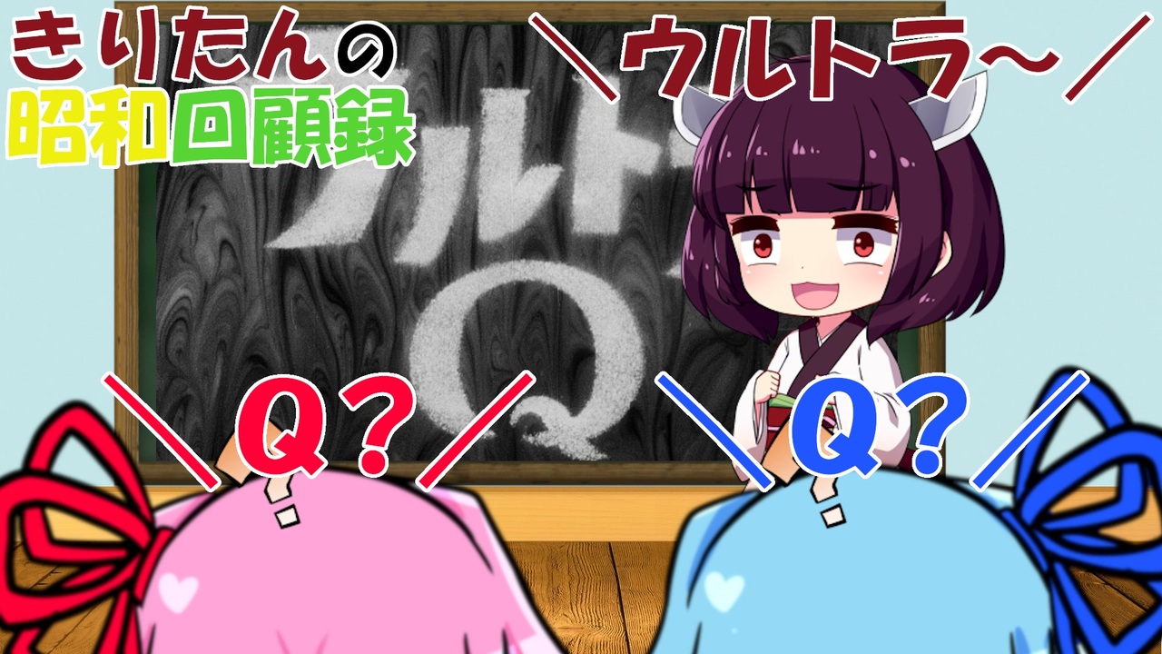 <strong>ようこそ! 昭和回顧録へ!</strong><br><br>昭和41年、登場です!<br>どんな文化物も最初は俗物であったことが多いのは言うまでもありません。今は高尚と持てはやされているものも最初はどこかの誰かにとっての娯楽でしかなかったわけで、その人たちの支持が続いたことで現在の状況に至っています。<br>今我々が下らないと思っているものも、いずれは文化の巨人になるかもしれませんよ?<br><br>では、ごゆっくりとお楽しみください!<br><br><a href="https://www.nicovideo.jp/watch/sm41450860" class="watch">sm41450860</a> ← 前 次 → <a href="https://www.nicovideo.jp/watch/sm41643981" class="watch">sm41643981</a><br>回顧目録 → <a href="https://www.nicovideo.jp/mylist/70366107" target="_blank" rel="noopener">mylist/70366107</a><br>YouTube版 → <a href="https://youtu.be/gfIWbOdc5R4" target="_blank" rel="noopener nofollow">https://youtu.be/gfIWbOdc5R4</a><br><br>シリーズ一話マイリスト →<span style="color: #006699;"> <a href="https://www.nicovideo.jp/mylist/69322831" target="_blank" rel="noopener">mylist/69322831</a></span><br>試作品マイリスト → <a href="https://www.nicovideo.jp/mylist/69322827" target="_blank" rel="noopener">mylist/69322827</a><br><br>更新情報とか質問とかツイッター → <a href="https://twitter.com/suzakatsuki" target="_blank" rel="noopener nofollow">https://twitter.com/suzakatsuki</a> <br><br>~お借りしたもの~<br>キャスト:東北きりたん、琴葉茜、琴葉葵<br>立ち絵:blueberry様(SD東北きりたん他)、りんどう様(ボイロミニキャラ後ろ姿素材)<br>背景:Pixabay様<br>小物類:写真AC様<br> 円谷プロ公式サイト様 <a href="https://m-78.jp/" target="_blank" rel="noopener nofollow">https://m-78.jp/</a><br> 仮面ライダーWEB様 <a href="https://www.kamen-rider-official.com/" target="_blank" rel="noopener nofollow">https://www.kamen-rider-official.com/</a><br>BGM:こんとどぅふぇ HiLi様<br> OP ほいっぷ!インストゥルメンタル<br> BGM お昼寝まくら、江戸桜の下で、ボクの旅立ち、強き者との戦い、そらのくも、シーサイド・クッキー、ゲンゲンゲンキだもん<br><br>効果音:魔王魂様<br> On-Jin ~音人~様<br><br>※リンク情報などは、マイリストの説明欄にて補足しています。