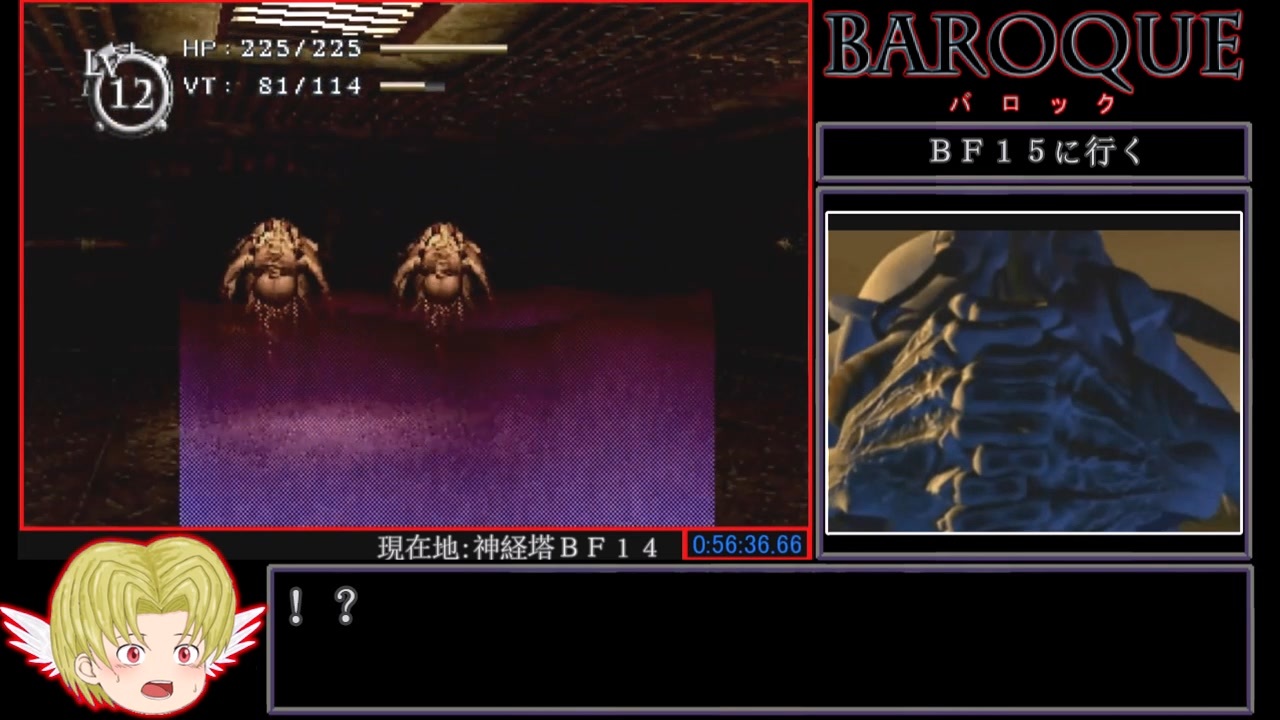 バロックのRTAの最終Partです。またまた忙しかった為、投稿が遅れてしまいました申し訳ありません。あと、ずっとVTをVPだと勘違いしていましたが、今更直しきれないのでご容赦ください。動画編集は完成後のミスの確認が一番しんどい気がしますね・・・。それはさておき、来年の1月10日まで本作のセールがやってるらしいですね。興味のある方はこの機会に購入してはいかがでしょうか?(ダイマ)<br><br><span style="color: #4d5156;">レギュレーションは、エンディングを見るまでの</span>Any%で、タイトル画面でスタートを押した瞬間から、エンディングのBGMが止まった瞬間までのタイムを計測してます<span style="color: #4d5156;">。が、見返すとちょっと早かった気がしますがご容赦ください。再出力するのめんどいんです。<br>プレイ環境は、</span>Nintendo Switchでホリ クラシックコントローラー for Nintendo Switch ゼルダを使用しています。<br><br>難解な作品なので設定等の解説に力を入れたつもりですが、それでも説明は足りないかもしれませんごめんなさい。また過去動画と解説が被ってるかもしれませんが、上げたのはだいぶ前なのでま、多少はね?<br><br><追記>多数のの宣伝・再生ありがとうございました。ちなみにですが12月31日までニンテンドープリペイドカードの増額キャンペーンが行われているので、セールと併用すればよりお得に本作をお求めいただくことができますよ(ダイマ)<br><br>前<a href="https://www.nicovideo.jp/watch/sm41001218" class="watch">sm41001218</a> 次 ないです おまけ1 <a href="https://www.nicovideo.jp/watch/sm41003453" class="watch">sm41003453</a> おまけ2<a href="https://www.nicovideo.jp/watch/sm41556123" class="watch">sm41556123</a> <a href="https://www.nicovideo.jp/mylist/55290772" target="_blank" rel="noopener">mylist/55290772</a><br><br><br><br>