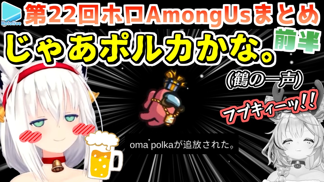 <a href="#" class="seekTime" data-seekTime="00:00" onclick="seekNicoPlayer('#00:00'); return false;">#00:00</a> 1試合目 シチュエーションなし<br><a href="#" class="seekTime" data-seekTime="20:14" onclick="seekNicoPlayer('#20:14'); return false;">#20:14</a> 2試合目 イケメンと男装女子<br><a href="#" class="seekTime" data-seekTime="25:39" onclick="seekNicoPlayer('#25:39'); return false;">#25:39</a> 3試合目 イケメンと男装女子<br><br>元動画様はこちら<br>【#ホロAmongUs】ほろ酔いで皆でデレデレしていいと聞いてきました【白上フブキ/ホロライブ】<br><a href="https://youtu.be/mzcJ2-e3yv0" target="_blank" rel="noopener nofollow">https://youtu.be/mzcJ2-e3yv0</a><br><br>【ホロAmongUs】酔っぱらっぴ~~~~~~!!ぺこ!【ホロライブ/兎田ぺこら】<br><a href="https://youtu.be/mttA69jkCUs" target="_blank" rel="noopener nofollow">https://youtu.be/mttA69jkCUs</a><br><br>【ホロAmongUs】白確ボンバーやめろ←やめない【ホロライブ/宝鐘マリン】<br><a href="https://youtu.be/eZ5RRnMhT-o" target="_blank" rel="noopener nofollow">https://youtu.be/eZ5RRnMhT-o</a><br><br>【#ホロAmongUs】カオス決定!シチュエーション×ほろ酔いAmongUs!【雪花ラミィ/ホロライブ】<br><a href="https://youtu.be/dWzWRbwAi-8" target="_blank" rel="noopener nofollow">https://youtu.be/dWzWRbwAi-8</a><br><br>【 ホロAmongUs 】深夜×お酒のねねち、あかんなあ!w【 桃鈴ねね / ホロライブ 】<br><a href="https://youtu.be/f_VQGCqH6T0" target="_blank" rel="noopener nofollow">https://youtu.be/f_VQGCqH6T0</a><br><br>【AmongUs】ほろ酔い仕立てのシチュエーションカルパッチョ~ポルカを添えて~【ホロライブ/尾丸ポルカ】<br><a href="https://youtu.be/McFkcOpAGu0" target="_blank" rel="noopener nofollow">https://youtu.be/McFkcOpAGu0</a><br><br>【ホロAmongUs】血みどろサンタになる。【鷹嶺ルイ/ホロライブ】<br><a href="https://youtu.be/IO8xhhtRJCs" target="_blank" rel="noopener nofollow">https://youtu.be/IO8xhhtRJCs</a><br><br>【AmongUs】ほろ酔いでどんどん崩壊していくアモングアス!【沙花叉クロヱ/ホロライブ】<br><a href="https://youtu.be/Gj_SJgmXy2w" target="_blank" rel="noopener nofollow">https://youtu.be/Gj_SJgmXy2w</a><br><br>【AmongUs】ほろ酔い×シチュエーションAmongUsでクリスマス〆のパーティー【博衣こより/ホロライブ】<br><a href="https://youtu.be/3H06LRRJMTE" target="_blank" rel="noopener nofollow">https://youtu.be/3H06LRRJMTE</a><br /><span style="color: #b7b7b7; font-size: 10px;">ホロライブ切り抜き/なめたけ <a href="https://t.co/CBwJLnYR2c" target="_blank" rel="noopener nofollow">https://t.co/CBwJLnYR2c</a></span>