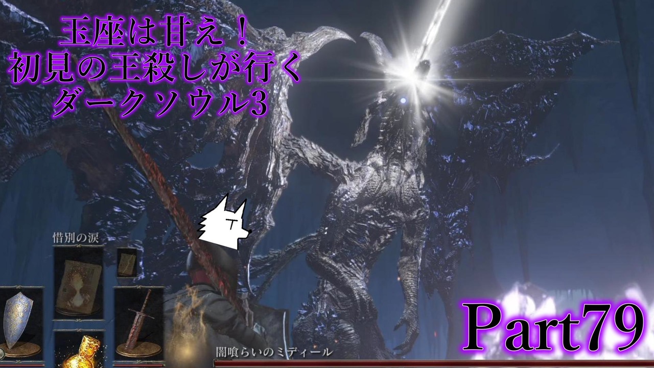 ~前回までのあらすじ~<br>ダクソに一途<br><br>お爺ちゃんを倒した栗御飯<br>次に向かったのは総辞職ビームを出してきた竜の元だった<br><br>今パートにて今年の動画収めとなります!<br>また次の動画は来年2023年の1月1週目のどこかで投稿予定です!<br>今年も自分の動画を楽しんでくれた人たちありがとー!<br>良いお年を!(^゚ω゚^)<br><br>Part1→<a href="https://www.nicovideo.jp/watch/sm28549563" class="watch">sm28549563</a> Part78→<a href="https://www.nicovideo.jp/watch/sm41564981" class="watch">sm41564981</a> Part80→<a href="https://www.nicovideo.jp/watch/sm41605460" class="watch">sm41605460</a><br><br>栗御飯の森チャンネル<br>・ニコニコ:<a href="http://ch.nicovideo.jp/kurigohangar" target="_blank" rel="noopener nofollow">http://ch.nicovideo.jp/kurigohangar</a><br>・YouTube:<a href="https://www.youtube.com/channel/UCq8vL9OwIjXGbKsvSeJFwuw" target="_blank" rel="noopener nofollow">https://www.youtube.com/channel/UCq8vL9OwIjXGbKsvSeJFwuw</a><br><br>ダークソウル3:<a href="https://www.nicovideo.jp/mylist/55403116" target="_blank" rel="noopener">mylist/55403116</a> <br>栗御飯の実況:<a href="https://www.nicovideo.jp/mylist/35346348" target="_blank" rel="noopener">mylist/35346348</a><br>Twitterアカウント:@kurigohangar