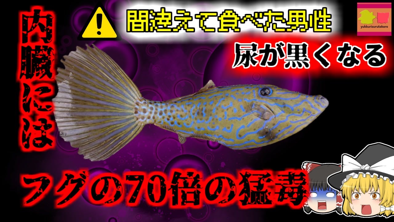 今回紹介するのは、以前リクエストがありました「自然毒」に関する事例です。<br>長崎県沿岸部某所の堤防ではこの日、地元に暮らす男性「Aさん」が釣りを楽しんでいました。<br>彼は北国出身で、九州や沖縄といった、南の暖かい地域にあこがれて移住してきた男性でした。<br>この日はここで釣れた魚を持ち帰り、刺身やみそ汁にして食べていたAさんでしたが、その翌朝、筋肉痛や痙攣、そして黒褐色の尿が出るなど、謎の症状が現れ始めました。<br>彼はその後、病院で検査を受けると「横紋筋融解症」「ミオグロビン尿症」を発症していたことがわかりました。<br>実は彼が前日に食べていた魚のいくつかには、「パリトキシン様毒」という毒素が含まれている種類のものがあり、彼はこのことを知らずに食べてしまったため、これらの症状を発症していました。<br><br><a href="#" class="seekTime" data-seekTime="00:00" onclick="seekNicoPlayer('#00:00'); return false;">#00:00</a> 冒頭挨拶<br><a href="#" class="seekTime" data-seekTime="00:28" onclick="seekNicoPlayer('#00:28'); return false;">#00:28</a> 視聴上の注意<br><a href="#" class="seekTime" data-seekTime="1:15" onclick="seekNicoPlayer('#1:15'); return false;">#1:15</a> 現地の説明<br><a href="#" class="seekTime" data-seekTime="2:17" onclick="seekNicoPlayer('#2:17'); return false;">#2:17</a> 釣り人「Aさん」<br><a href="#" class="seekTime" data-seekTime="3:02" onclick="seekNicoPlayer('#3:02'); return false;">#3:02</a> 暖かい地域が好きだった<br><a href="#" class="seekTime" data-seekTime="3:16" onclick="seekNicoPlayer('#3:16'); return false;">#3:16</a> 家で釣れた魚を調理するAさん<br><a href="#" class="seekTime" data-seekTime="4:02" onclick="seekNicoPlayer('#4:02'); return false;">#4:02</a> 異変<br><a href="#" class="seekTime" data-seekTime="4:44" onclick="seekNicoPlayer('#4:44'); return false;">#4:44</a> 恐ろしい色の尿が…<br><a href="#" class="seekTime" data-seekTime="5:32" onclick="seekNicoPlayer('#5:32'); return false;">#5:32</a> 麻痺などの神経症状も<br><a href="#" class="seekTime" data-seekTime="6:10" onclick="seekNicoPlayer('#6:10'); return false;">#6:10</a> ミオグロビン尿症と横紋筋融解症<br><a href="#" class="seekTime" data-seekTime="7:16" onclick="seekNicoPlayer('#7:16'); return false;">#7:16</a> 原因<br><a href="#" class="seekTime" data-seekTime="8:06" onclick="seekNicoPlayer('#8:06'); return false;">#8:06</a> 残骸には内臓に毒をもつ魚が<br><a href="#" class="seekTime" data-seekTime="9:10" onclick="seekNicoPlayer('#9:10'); return false;">#9:10</a> ブダイ・ソウシハギのいずれかで中毒に<br><a href="#" class="seekTime" data-seekTime="9:24" onclick="seekNicoPlayer('#9:24'); return false;">#9:24</a> ソウシハギとは<br><a href="#" class="seekTime" data-seekTime="10:35" onclick="seekNicoPlayer('#10:35'); return false;">#10:35</a> 生物濃縮<br><a href="#" class="seekTime" data-seekTime="12:03" onclick="seekNicoPlayer('#12:03'); return false;">#12:03</a> 無毒種と有毒種の見分け方<br><a href="#" class="seekTime" data-seekTime="14:06" onclick="seekNicoPlayer('#14:06'); return false;">#14:06</a> 必要以上に不安をあおるなという意見も<br><a href="#" class="seekTime" data-seekTime="14:36" onclick="seekNicoPlayer('#14:36'); return false;">#14:36</a> 海釣りをするときは気を付けよう<br><br><br>引用・出展・参考文献<br>厚生労働省 自然毒のリスクプロファイル「パリトキシン様毒」<br><a href="https://ishort.ink/TE8m" target="_blank" rel="noopener nofollow">https://ishort.ink/TE8m</a><br>KHB5 石川の港に「ソウシハギ」<br><a href="https://ishort.ink/bYvG" target="_blank" rel="noopener nofollow">https://ishort.ink/bYvG</a><br>Jcastニュース ソウシハギ全国で目撃<br><a href="https://ishort.ink/kYw4" target="_blank" rel="noopener nofollow">https://ishort.ink/kYw4</a><br>マピオン 長崎県<br><a href="https://ishort.ink/XXZJ" target="_blank" rel="noopener nofollow">https://ishort.ink/XXZJ</a><br>ソウシハギ - 三重県<br><a href="https://ishort.ink/S4w4" target="_blank" rel="noopener nofollow">https://ishort.ink/S4w4</a><br>その他視聴者提供資料など
