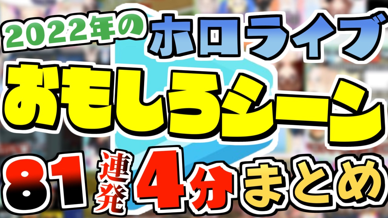 みんなの思う名シーンも教えてください!<br><br>↓元動画様と自分の切り抜きをまとめた再生リスト<br><a href="https://www.youtube.com/playlist?list=PLgQncQyv0LeQgRzZ0tbouUfUV79EUZrH2" target="_blank" rel="noopener nofollow">https://www.youtube.com/playlist?list=PLgQncQyv0LeQgRzZ0tbouUfUV79EUZrH2</a><br><br>↓去年の<br>5分で駆け抜ける2021年のホロライブおもしろシーンまとめ <a href="https://www.nicovideo.jp/watch/sm39838214" class="watch">sm39838214</a><br><br>♪お借りしたBGM:ジェットペンギン3号/騒音のない世界 様<br /><span style="color: #b7b7b7; font-size: 10px;">ホロライブ切り抜き/なめたけ <a href="https://t.co/CBwJLnYR2c" target="_blank" rel="noopener nofollow">https://t.co/CBwJLnYR2c</a></span>