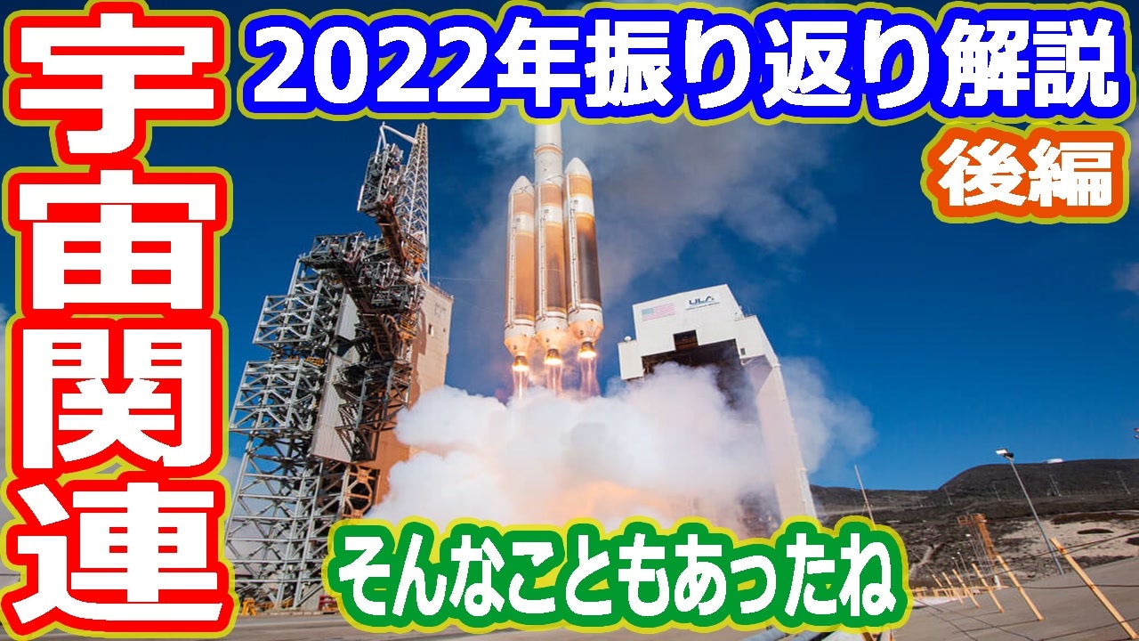 前編 <a href="https://www.nicovideo.jp/watch/sm41587010" class="watch">sm41587010</a><br>2022年も終わり、新たな年を迎えようとしています<br>宇宙関係ではこの一年でなにがあったのかおさらいしてみようと思います<br>全て紹介するのは難しいので、独断と偏見でピックアップしていきます<br>・ソニーのSTAR SPHERE EYE解説<br><a href="https://www.nicovideo.jp/watch/sm40897152" class="watch">sm40897152</a><br>・ジェームズウェッブ宇宙望遠鏡観測画像<br><a href="https://www.flickr.com/photos/nasawebbtelescope/albums/72177720300469752" target="_blank" rel="noopener nofollow">https://www.flickr.com/photos/nasawebbtelescope/albums/72177720300469752</a><br>【訂正】オモテナシの紹介部分で表示している動画はエクレウスのものでした<br><br>【欲しいものリスト】<br><a href="https://www.amazon.jp/hz/wishlist/ls/30HG3KS6HM6G?ref_=wl_share" target="_blank" rel="noopener nofollow">https://www.amazon.jp/hz/wishlist/ls/30HG3KS6HM6G?ref_=wl_share</a><br>【いちおし宇宙系】<br>・アマゾン総合リンク<br><a href="https://amzn.to/2S8xjpH" target="_blank" rel="noopener nofollow">https://amzn.to/2S8xjpH</a><br>・レゴ(LEGO)アイデア レゴ(R) NASA アポロ計画 サターンV<br><a href="https://amzn.to/3xx5QAf" target="_blank" rel="noopener nofollow">https://amzn.to/3xx5QAf</a><br>・LEGO レゴ クリエイターエキスパート 10266 NASA アポロ11号 月着陸船<br><a href="https://amzn.to/3EpM3nV" target="_blank" rel="noopener nofollow">https://amzn.to/3EpM3nV</a><br>・月をめざした二人の科学者 アポロとスプートニクの軌跡<br>kindle版<br><a href="https://amzn.to/3OvBftd" target="_blank" rel="noopener nofollow">https://amzn.to/3OvBftd</a><br>書籍版<br><a href="https://amzn.to/390wWWn" target="_blank" rel="noopener nofollow">https://amzn.to/390wWWn</a><br>公平性や中立性を考えてアフィリエイトリンクは控えていましたが、得た収益を次のレビュー書籍や機材代にするために始めました<br>よろしくお願いします<br>へえ~と思ったらチャンネル登録と高評価をお願います<br>ツイッターでは、たまに宇宙ネタをつぶやいています<br><br>◆チャンネル登録はこちら<br><a href="http://www.youtube.com/channel/UChOv-TZWg3X4MDjFUF8CfQg?sub_confirmation=1" target="_blank" rel="noopener nofollow">http://www.youtube.com/channel/UChOv-TZWg3X4MDjFUF8CfQg?sub_confirmation=1</a><br>◆サブチャンネル<br><a href="http://www.youtube.com/channel/UCpQEOLtOpmXUwslvgi93yQw?sub_confirmation=1" target="_blank" rel="noopener nofollow">http://www.youtube.com/channel/UCpQEOLtOpmXUwslvgi93yQw?sub_confirmation=1</a><br>◆twitterはこちら<br><a href="https://twitter.com/skysanpei" target="_blank" rel="noopener nofollow">https://twitter.com/skysanpei</a>
