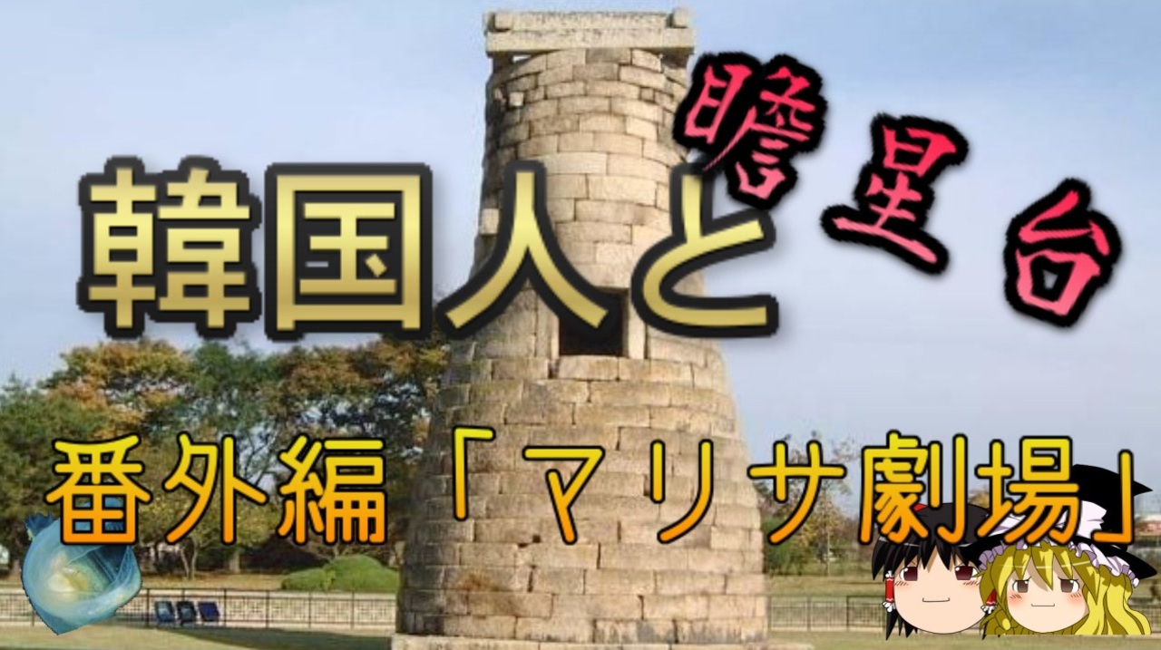 さて、本日は「いつものアレ」シリーズとして、韓国が東アジア最古の天文台と自称している「瞻星台」について扱う動画の番外編、ネタ動画です。<br>先に以下の動画の視聴をお勧めします。<br><br>韓国人と瞻星台<br><a href="https://www.nicovideo.jp/watch/sm41623715" class="watch">sm41623715</a><br><br><br>関連動画<br>日韓問題】ソメイヨシノの韓国起源説 前編<br><a href="https://www.nicovideo.jp/watch/sm32939884" class="watch">sm32939884</a><br><br>本日のブログ記事<br><a href="https://oogchib.hateblo.jp/entry/2023/01/08/173200" target="_blank" rel="noopener nofollow">https://oogchib.hateblo.jp/entry/2023/01/08/173200</a><br><br>注意<br>・この動画は「日韓の価値観の違い」を扱っています<br><br>・うp主のスタンスは「価値観に善悪や優劣は存在しない」というものです<br><br>・相手が不法を働いているからとこちらが不法をして良い理由にはなりません<br><br>・自身の常識が相手にとっても常識とは限りません、「他者がそれを見たら<br>どう思うか」という客観性を常に持ちましょう。<br><br>・日常生活で注意する程度には言動に注意を心がけてください<br><br>・リクエストは原則受け付けていません<br><br>・引用ソースへのリンクが同時掲載のブログにあります<br><br>・毎週日曜日更新<br><br>引用ソースと動画のテキストをブログ日韓問題(初心者向け)のほうへ掲載しています。<br><br>日韓問題(初心者向け)<br><a href="https://oogchib.hateblo.jp/" target="_blank" rel="noopener nofollow">https://oogchib.hateblo.jp/</a><br><br>暇つぶしにどうぞ<br><a href="http://ooguchib.blog.fc2.com/" target="_blank" rel="noopener nofollow">http://ooguchib.blog.fc2.com/</a> <br><br>twitter @ooguchib<br><a href="https://twitter.com/ooguchib" target="_blank" rel="noopener nofollow">https://twitter.com/ooguchib</a><br><br><br>番外編マイリスト<br><a href="https://www.nicovideo.jp/mylist/62992608" target="_blank" rel="noopener">mylist/62992608</a><br><br>YouTube版<br><a href="https://youtu.be/YnlWrV-1dxg" target="_blank" rel="noopener nofollow">https://youtu.be/YnlWrV-1dxg</a><br>