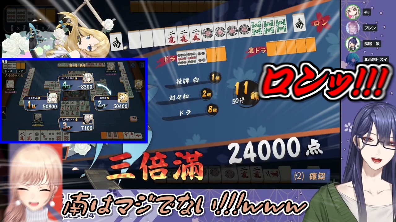 フレンド派手に飛んだな~<br>だがこんな一撃でもえるえるには届かんかったか…<br><br>本家参考動画<br>・長尾景<br>【#にじさんじ麻雀杯】麻雀杯準決 ~長尾視点~【長尾景/にじさんじ】<br><a href="https://youtu.be/qbtpD1BwGIo" target="_blank" rel="noopener nofollow">https://youtu.be/qbtpD1BwGIo</a><br>・フレン・E・ルスタリオ<br>【#にじさんじ麻雀杯】準決勝!ポンチーロンじゃい!!【にじさんじ】<br><a href="https://youtu.be/kjzdKcO2BaM" target="_blank" rel="noopener nofollow">https://youtu.be/kjzdKcO2BaM</a><br>・エルフのえる<br>【#にじさんじ麻雀杯 】準決勝 ②|える視点 第3話「たのむたのむまじで」【雀魂】【にじさんじ/える】<br><a href="https://youtu.be/nFs1Iox5T94" target="_blank" rel="noopener nofollow">https://youtu.be/nFs1Iox5T94</a><br>・北小路ヒスイ<br>【#にじさんじ麻雀杯Day2】新春脳みそとろとろ麻雀2【北小路ヒスイ/にじさんじ】<br><a href="https://youtu.be/b2aKp2Jfb9Q" target="_blank" rel="noopener nofollow">https://youtu.be/b2aKp2Jfb9Q</a><br>・にじさんじ公式<br>【#にじさんじ麻雀杯Day2】新春!にじさんじ麻雀杯2023 ~準決勝・決勝~<br><a href="https://youtu.be/JUeiivQBotc" target="_blank" rel="noopener nofollow">https://youtu.be/JUeiivQBotc</a><br><br>参考元チャンネル&Twitter<br>・長尾景<br><a href="https://www.youtube.com/@NagaoKei" target="_blank" rel="noopener nofollow">https://www.youtube.com/@NagaoKei</a><br><a href="https://twitter.com/kei_nagao2434" target="_blank" rel="noopener nofollow">https://twitter.com/kei_nagao2434</a><br>・フレン・E・ルスタリオ<br><a href="https://www.youtube.com/@FurenELustario" target="_blank" rel="noopener nofollow">https://www.youtube.com/@FurenELustario</a><br><a href="https://twitter.com/furen_2434" target="_blank" rel="noopener nofollow">https://twitter.com/furen_2434</a><br>・エルフのえる<br><a href="https://www.youtube.com/@Elu" target="_blank" rel="noopener nofollow">https://www.youtube.com/@Elu</a><br><a href="https://twitter.com/Elu_World" target="_blank" rel="noopener nofollow">https://twitter.com/Elu_World</a><br>・北小路ヒスイ<br><a href="https://www.youtube.com/@KitakojiHisui" target="_blank" rel="noopener nofollow">https://www.youtube.com/@KitakojiHisui</a><br><a href="https://twitter.com/Hisui_Kitakoji" target="_blank" rel="noopener nofollow">https://twitter.com/Hisui_Kitakoji</a><br>・ルイス・キャミー<br><a href="https://www.youtube.com/@LuisCammy" target="_blank" rel="noopener nofollow">https://www.youtube.com/@LuisCammy</a><br><a href="https://twitter.com/Luis_Cammy" target="_blank" rel="noopener nofollow">https://twitter.com/Luis_Cammy</a><br>・社築<br><a href="https://www.youtube.com/@YashiroKizuku" target="_blank" rel="noopener nofollow">https://www.youtube.com/@YashiroKizuku</a><br><a href="https://twitter.com/846kizuQ" target="_blank" rel="noopener nofollow">https://twitter.com/846kizuQ</a><br>・ジョー・力一<br><a href="https://www.youtube.com/@JoeRikiichi" target="_blank" rel="noopener nofollow">https://www.youtube.com/@JoeRikiichi</a><br><a href="https://twitter.com/JoeRikiichi" target="_blank" rel="noopener nofollow">https://twitter.com/JoeRikiichi</a><br>・にじさんじ<br><a href="https://www.youtube.com/@nijisanji" target="_blank" rel="noopener nofollow">https://www.youtube.com/@nijisanji</a><br><a href="https://twitter.com/nijisanji_app" target="_blank" rel="noopener nofollow">https://twitter.com/nijisanji_app</a>