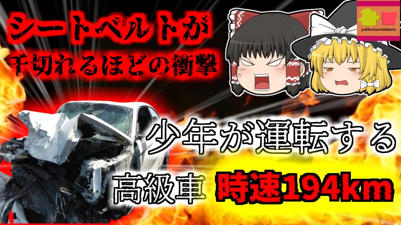 今回紹介するのは、昨年リクエストがありました、「大分県高級車暴走事故」です。<br>大分県大分市里の交差点で、右折中の自動車に、対向車線から交差点に進入してきた車が激突し、男性が亡くなる事故が発生しました。<br>右折車を運転していた男性は、市内に暮らす「Aさん」。<br>一方、直進してきた対向車には、19歳の少年「B」が乗っていました。<br>両車両は全部が大きく大破しましたが、少年が乗っていた車はドイツの高級車だったため、比較的損傷が少なく、乗っていたBも重傷を負ったものの生存。<br>その一方、衝突された側のAさんの車両は、全部が変形して原形をとどめないほどになっており、Aさん自身も凄まじい衝撃を受け、シートベルトが千切れてしまい、車外へと放り出されてしまったため、命を落としてしまいました。<br><br>現場は若干特殊な道路ではありましたが、片側三車線で見通しのいい交差点だったにもかかわらず、なぜこのような事故が起きてしまったのでしょうか?<br>今回は危険運転、過失運転の違いや、その要件などについても解説しています。<br><br><a href="#" class="seekTime" data-seekTime="00:00" onclick="seekNicoPlayer('#00:00'); return false;">#00:00</a> 冒頭挨拶<br><a href="#" class="seekTime" data-seekTime="00:28" onclick="seekNicoPlayer('#00:28'); return false;">#00:28</a> 視聴上の注意<br><a href="#" class="seekTime" data-seekTime="00:58" onclick="seekNicoPlayer('#00:58'); return false;">#00:58</a> 現地の説明<br><a href="#" class="seekTime" data-seekTime="1:40" onclick="seekNicoPlayer('#1:40'); return false;">#1:40</a> 広い道<br><a href="#" class="seekTime" data-seekTime="2:25" onclick="seekNicoPlayer('#2:25'); return false;">#2:25</a> 右折中に激突<br><a href="#" class="seekTime" data-seekTime="3:49" onclick="seekNicoPlayer('#3:49'); return false;">#3:49</a> 加害者のみ生存<br><a href="#" class="seekTime" data-seekTime="4:23" onclick="seekNicoPlayer('#4:23'); return false;">#4:23</a> 当時の状況<br><a href="#" class="seekTime" data-seekTime="4:49" onclick="seekNicoPlayer('#4:49'); return false;">#4:49</a> 時速194kmで突っ込んできた高級車<br><a href="#" class="seekTime" data-seekTime="5:19" onclick="seekNicoPlayer('#5:19'); return false;">#5:19</a> シートベルトが千切れていた<br><a href="#" class="seekTime" data-seekTime="5:54" onclick="seekNicoPlayer('#5:54'); return false;">#5:54</a> 「何キロでるか試したかった」<br><a href="#" class="seekTime" data-seekTime="7:06" onclick="seekNicoPlayer('#7:06'); return false;">#7:06</a> 危険運転致〇傷罪<br><a href="#" class="seekTime" data-seekTime="7:50" onclick="seekNicoPlayer('#7:50'); return false;">#7:50</a> なぜ過失で起訴に?<br><a href="#" class="seekTime" data-seekTime="11:05" onclick="seekNicoPlayer('#11:05'); return false;">#11:05</a> 高速状態で発生する事故<br><a href="#" class="seekTime" data-seekTime="12:40" onclick="seekNicoPlayer('#12:40'); return false;">#12:40</a> 車両を運転するということ<br><br><br>引用・出展・参考文献<br>安全運転推進協会<br><a href="https://ishort.ink/xAqF" target="_blank" rel="noopener nofollow">https://ishort.ink/xAqF</a><br>Yahoo!ニュース『一般道で時速194kmの〇亡事故、なぜ「過失」なのですか? 弟亡くした姉が訴えたこと』<br><a href="https://ishort.ink/prFF" target="_blank" rel="noopener nofollow">https://ishort.ink/prFF</a><br>チューリッヒ保険会社<br><a href="https://ishort.ink/XFnh" target="_blank" rel="noopener nofollow">https://ishort.ink/XFnh</a><br>その他視聴者提供資料など<br><br><br />※この動画は過去の事件を知り、現在でも同じことが発生する危険性を再認識、関与しないように促すための動画であり、視聴者を扇動、動揺を誘うためのコンテンツではありません。<br><br>ご要望にお応えして、メンバーシップの開設を行いました。<br>下記URLからも登録可能ですので、ご興味がある方は是非ご参加ください。<br><a href="https://www.youtube.com/channel/UCcT5a1J7XJW7CLYI2RKl4pw/join" target="_blank" rel="noopener nofollow">https://www.youtube.com/channel/UCcT5a1J7XJW7CLYI2RKl4pw/join</a><br><br><br>Twitter<br>→<a href="https://twitter.com/yukkurisurutoko" target="_blank" rel="noopener nofollow">https://twitter.com/yukkurisurutoko</a><br><br>取り急ぎ、簡易的にですがマイリストを作りました。<br>【ゆっくり解説】事故・事件関係紹介リスト <br><a href="https://www.nicovideo.jp/mylist/71034319" target="_blank" rel="noopener nofollow">https://www.nicovideo.jp/mylist/71034319</a><br>【ゆっくり解説】放射線系事故<br><a href="https://www.nicovideo.jp/mylist/71034368" target="_blank" rel="noopener nofollow">https://www.nicovideo.jp/mylist/71034368</a><br>【ゆっくり解説】鉄道系事故・事件関連<br><a href="https://www.nicovideo.jp/mylist/71034379" target="_blank" rel="noopener nofollow">https://www.nicovideo.jp/mylist/71034379</a>