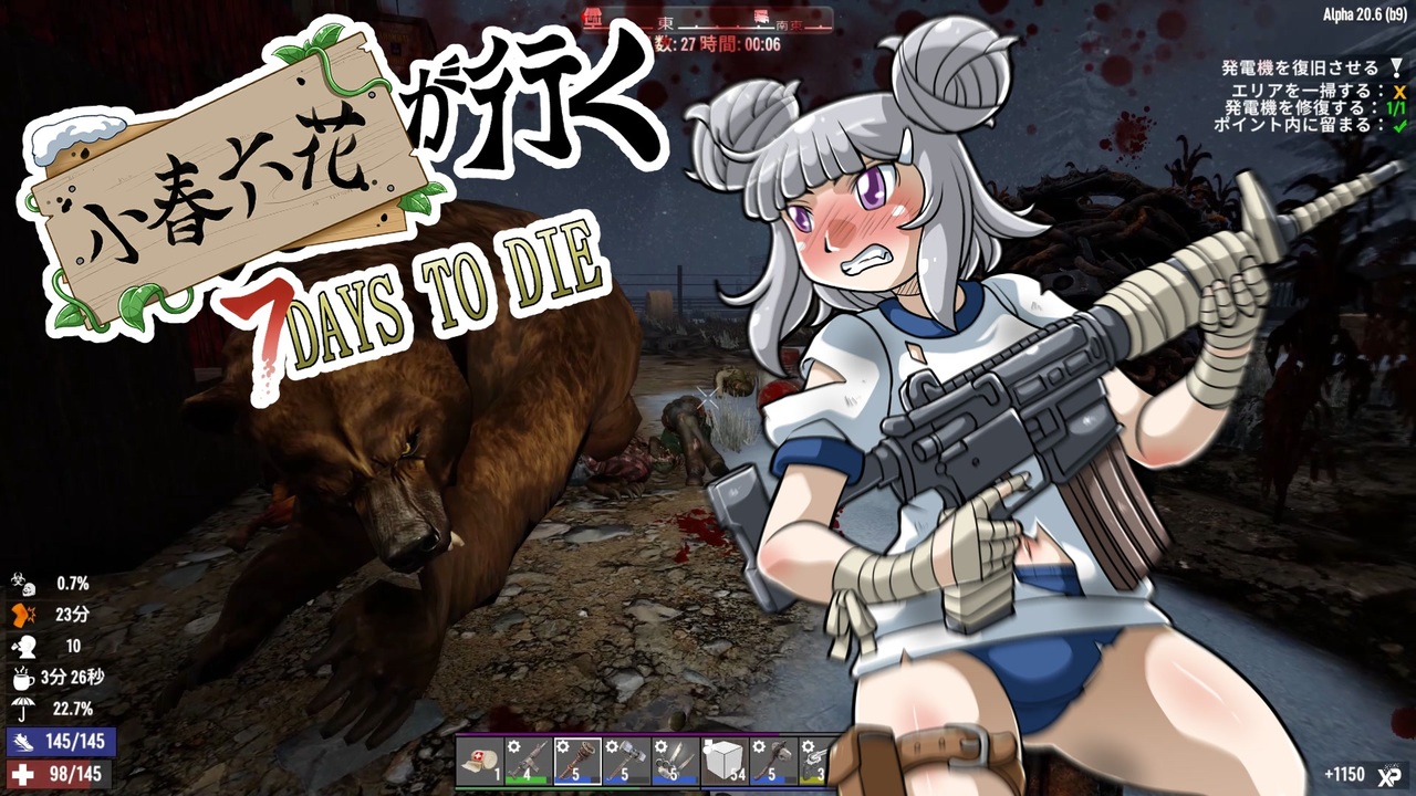 皆さんこんにちは。生アーキルーです。<br>いつもご視聴・広告・コメントありがとうございます。<br><br>新年明けましておめでとうございます。<br>今年も動画制作を頑張ろうと思いますので、よろしくお願いします。<br><br>今パートは、逃走回となってます。<br>いっぱい逃げますので、ぜひ楽しんでいってください。<br><br>今回は、24日目~27日目の収録です(α20.6)<br><br><span style="color: #262626;">本動画では「RikeiR」様のα20翻訳修正MODを入れております</span><span style="color: #ff9900;">。</span><br><br>ーーーーーーーーーーーーーーーーーーーーーーーーーーー<br>今シリーズは縛りプレイを入れていきます。<br><br>☆「ティア3以下の回収のみのクエは、回収しかやってはいけない」<br><br>・ゾンビの撃破禁止(セクハラはOK)<br>・武器は石斧のみ<br>・妨害用のアイテムは、ダメージを伴わない木材系のみ<br>(強化も木材のみ)<br>・必ず順路侵入口から入る事<br>(外壁を破壊して侵入・回収は駄目)<br>・回収物を持った状態で、屋外に脱出できればクリア<br>・バフは、食事によるスタミナ上限アップと、コーヒーのみ可<br><br>☆「ティア4以降の回収込みの一掃クエは、上記のルールで回収を行い、<br> 回収完了の判定が出て、初めて戦闘可能となる」<br><br>・一旦脱出はしなくても良い。<br>・戦闘用の武器をベルトに入れたままにしても良い。<br>(但し、回収完了までに使用したらNG)<br><br>☆「電源復旧」のクエも上記のルールで行い、<br>全て復旧できて初めて戦闘可能になります。<br><br>ーーーーーーーーーーーーーーーーーーーーーーーーーーー<br><br><br>ゲーム設定<br>・難易度 遊牧民<br>・ゾンビ 全力疾走<br>・ブラッドムーン 64体<br><br>MAP「PREGEN 6k」<br><br>鬼娘が行く! 7Days To Die(マイリスト)<br><a href="https://www.nicovideo.jp/mylist/66455257" target="_blank" rel="noopener">mylist/66455257</a><br>雪原を葵が行く! 7Days To Die(マイリスト)<br><a href="https://www.nicovideo.jp/mylist/70598018" target="_blank" rel="noopener">mylist/70598018</a><br><br>たまにつぶやいてます<br><a href="https://twitter.com/namaakl" target="_blank" rel="noopener nofollow">https://twitter.com/namaakl</a>