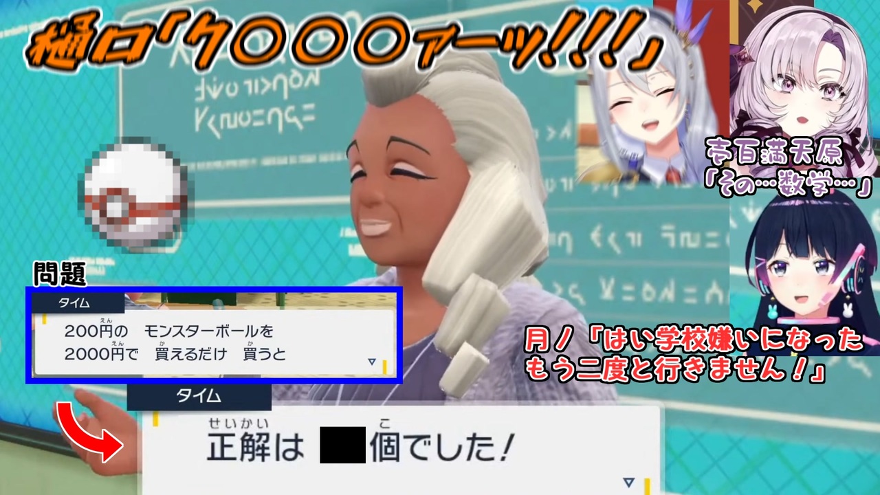 この手のひっかけ問題って運転免許の<br>試験とかに結構多いのよね<br><br>本家参考動画<br>・樋口楓<br>【ポケモンSV #2】入学したところから開始~ホゲータLv14~【にじさんじ / 樋口楓】<br><a href="https://youtu.be/MxLRpqHeT0I" target="_blank" rel="noopener nofollow">https://youtu.be/MxLRpqHeT0I</a><br>・壱百満天原サロメ<br>【ポケモンSV】14 ✦ 5タテされました□ 厳選旅パ おバイオレットでございます!【ですわ~】<br><a href="https://youtu.be/xXXqmSQ2OnY" target="_blank" rel="noopener nofollow">https://youtu.be/xXXqmSQ2OnY</a><br>・月ノ美兎<br>【ポケモンSV】いよいよ大詰め…ってこと!?<br><a href="https://youtu.be/-ebEjwvGFf4" target="_blank" rel="noopener nofollow">https://youtu.be/-ebEjwvGFf4</a><br><br>参考元チャンネル&Twitter<br>・樋口楓<br><a href="https://www.youtube.com/@HiguchiKaede" target="_blank" rel="noopener nofollow">https://www.youtube.com/@HiguchiKaede</a><br><a href="https://twitter.com/Higuchikaede" target="_blank" rel="noopener nofollow">https://twitter.com/Higuchikaede</a><br>・壱百満天原サロメ<br><a href="https://www.youtube.com/@HyakumantenbaraSalome" target="_blank" rel="noopener nofollow">https://www.youtube.com/@HyakumantenbaraSalome</a><br><a href="https://twitter.com/1000000lome" target="_blank" rel="noopener nofollow">https://twitter.com/1000000lome</a><br>・月ノ美兎<br><a href="https://www.youtube.com/@TsukinoMito" target="_blank" rel="noopener nofollow">https://www.youtube.com/@TsukinoMito</a><br><a href="https://twitter.com/MitoTsukino" target="_blank" rel="noopener nofollow">https://twitter.com/MitoTsukino</a><br><br>ニコニコのダイコンマンリスト<br>「バーチャルYouTuberシリーズ」↓<br><a href="https://www.nicovideo.jp/mylist/62551838" target="_blank" rel="noopener">mylist/62551838</a><br>「バーチャルYouTuberシリーズ2」↓<br><a href="https://www.nicovideo.jp/mylist/67858437" target="_blank" rel="noopener">mylist/67858437</a><br>「バーチャルYouTuberシリーズ3」↓<br><a href="https://www.nicovideo.jp/mylist/71340675" target="_blank" rel="noopener">mylist/71340675</a><br>「バーチャルYouTuberシリーズ4」↓<br><a href="https://www.nicovideo.jp/mylist/73995264" target="_blank" rel="noopener">mylist/73995264</a><br><br>ダイコンマンのTwitter<br><a href="https://twitter.com/Daikon_Man_V" target="_blank" rel="noopener nofollow">https://twitter.com/Daikon_Man_V</a>
