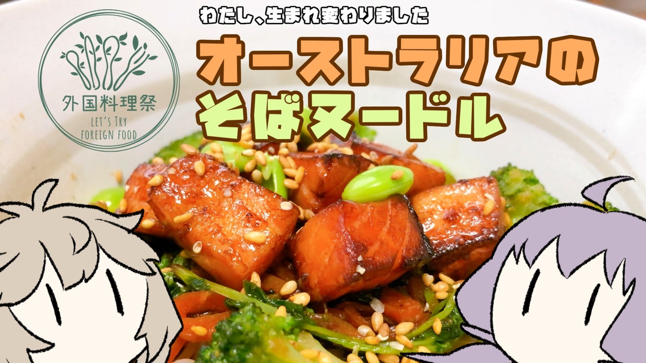 とりあえずテリヤキソースかけておけば日本食という精神、嫌いじゃない<br><br>料理名:テリヤキサーモン蕎麦<br>発祥場所:オーストラリア(?)<br><span style="font-size: 10px;">(同国で似たようなレシピを複数見つけたので、創作料理ではないハズ…)</span><br><br>◆外国料理祭を開催しましょ!(えいぼん!様):<a href="https://www.nicovideo.jp/watch/sm41455782" class="watch">sm41455782</a><br><br>次回:発酵鍋(<a href="https://www.nicovideo.jp/watch/sm43382906" class="watch">sm43382906</a>)<br>前回:コーヒー漬けサーモン(<a href="https://www.nicovideo.jp/watch/sm41052408" class="watch">sm41052408</a>)<br><br><br>(23/1/26 追記)<br>コメント:ラル飯マトリョーシカバーガーお願いします<br> リクエストありがとうございます!<br> やりたいネタではあるのですが、編集スケジュールと投稿祭の準備の関係で<br> 実現は4月以降になるかと思います。申し訳ない。<br><br />==============================================================<br>・キッチン動画<br> ゆかりさんと料理の時間(いつもの):<a href="https://www.nicovideo.jp/series/230101" target="_blank" rel="noopener">series/230101</a><br> ツムギ・イン・サイタマ(不定期):<a href="https://www.nicovideo.jp/series/302303" target="_blank" rel="noopener">series/302303</a><br> 単発(不定期):<a href="https://www.nicovideo.jp/series/323876" target="_blank" rel="noopener">series/323876</a><br><br>・ゲーム実況<br> ジェイル・ハウス・ロック [Back to the Dawn]:<a href="https://www.nicovideo.jp/series/449219" target="_blank" rel="noopener">series/449219</a><br><br>・その他<br> <a href="https://www.nicovideo.jp/series/343714" target="_blank" rel="noopener">series/343714</a><br><br>開催済みの投稿祭:「あなたのトースト教えてくだ祭」<br> 参加動画まとめ:<a href="https://www.nicovideo.jp/mylist/74853270" target="_blank" rel="noopener">mylist/74853270</a><br> 追走ツイートまとめ(2023年6月7日完走):<a href="https://togetter.com/li/2116020" target="_blank" rel="noopener nofollow">https://togetter.com/li/2116020</a><br><br>X(twitter)はじめてみました:<a href="https://twitter.com/72965Ando" target="_blank" rel="noopener nofollow">https://twitter.com/72965Ando</a>