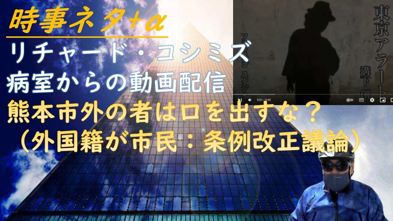 オープニング/エンディングBGM<br>東京アラート /溝下 創 Flamingo Studio<br><a href="https://www.youtube.com/watch?v=2k4udMBFmoI" target="_blank" rel="noopener nofollow">https://www.youtube.com/watch?v=2k4udMBFmoI</a><br><br><br>■リチャード・コシミズ<br>病室からの動画配信<br><a href="https://www.nicovideo.jp/watch/sm41654501" target="_blank" rel="noopener nofollow">https://www.nicovideo.jp/watch/sm41654501</a><br>血栓溶解療法<br>ビルケイツ:しどろもどろ<br>河野太郎<br><br><br>■長尾CH<br>打っていたから軽症で済んだ」は「壺を買っていたから…」と同じ論理<br><a href="https://www.nicovideo.jp/watch/sm41649209" target="_blank" rel="noopener nofollow">https://www.nicovideo.jp/watch/sm41649209</a><br><br><br>■山陰中央新報<br>採血の90代男性に誤ってコロナワクチンを接種、男性は既に接種済みで「二重のミス」<br><a href="https://nordot.app/986828291183558656" target="_blank" rel="noopener nofollow">https://nordot.app/986828291183558656</a><br><br>■共同通信<br>屋内もマスク不要案浮上 コロナ「5類」移行で政府<br><a href="https://nordot.app/986914666777444352" target="_blank" rel="noopener nofollow">https://nordot.app/986914666777444352</a><br><br><br>【公式】武田邦彦の「ホントの話。」第126回 2023年1月13日放送<br>少子化の理由と増税の罠 政治家が取る「全責任」とは 地獄の「老人再教育プログラム」?<br><a href="https://www.youtube.com/watch?v=Sfyji8YeWNE" target="_blank" rel="noopener nofollow">https://www.youtube.com/watch?v=Sfyji8YeWNE</a><br><br>■エネルギーフロントライン<br>Vol.41 窓ガラスが発電する 京大発スタートアップの挑戦<br><a href="https://onl.bz/acExVSf" target="_blank" rel="noopener nofollow">https://onl.bz/acExVSf</a><br><br>■産経新聞<br>国際研究に500億円基金 首相、ワシントンの講演で表明<br><a href="https://onl.bz/P4D6WHv" target="_blank" rel="noopener nofollow">https://onl.bz/P4D6WHv</a><br><br><br>------------------------------------<br>Twitter <br>覗いてみてください<br><a href="https://twitter.com/machigoma" target="_blank" rel="noopener nofollow">https://twitter.com/machigoma</a>