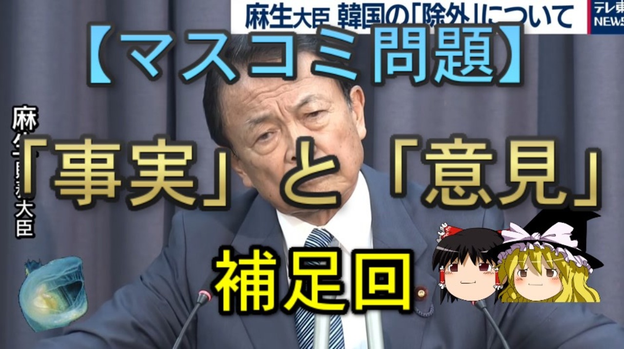 さて、本日は過去動画「「事実」と「意見」」の補足回です。<br><br>【ゆっくり解説】「事実」と「意見」<br><a href="https://www.nicovideo.jp/watch/sm41656568" class="watch">sm41656568</a><br><br>本日のブログ記事<br><a href="https://oogchib.hateblo.jp/entry/2023/01/15/210438" target="_blank" rel="noopener nofollow">https://oogchib.hateblo.jp/entry/2023/01/15/210438</a><br><br>注意<br>・この動画は「マスコミ問題」を扱っています<br><br>・「マスコミ問題」であり右派・左派等の陣営論争は本題ではありません<br><br>・「特定の国との特別な関係」は問題の枝葉です、主問題は業界の体質です<br><br>・自身の常識が相手にとっても常識とは限りません、「他者がそれを見たらど<br>う思うか」という客観性を常に持ちましょう。<br><br>・日常生活で注意する程度には言動に注意を心がけてください<br><br>・リクエストは原則受け付けていません<br><br>・引用ソースへのリンクが同時掲載のブログにあります<br><br>・毎週土曜日更新<br><br>引用ソースと動画のテキストをブログ日韓問題(初心者向け)のほうへ掲載しています。<br><br>日韓問題(初心者向け)<br><a href="https://oogchib.hateblo.jp/" target="_blank" rel="noopener nofollow">https://oogchib.hateblo.jp/</a><br><br>暇つぶしにどうぞ<br><a href="http://ooguchib.blog.fc2.com/" target="_blank" rel="noopener nofollow">http://ooguchib.blog.fc2.com/</a> <br><br>twitter @ooguchib<br><a href="https://twitter.com/ooguchib" target="_blank" rel="noopener nofollow">https://twitter.com/ooguchib</a><br><br>前 <a href="https://www.nicovideo.jp/watch/sm41629903" class="watch">sm41629903</a> <a href="https://www.nicovideo.jp/mylist/59069876" target="_blank" rel="noopener">mylist/59069876</a> にちようび<br><br>番外編マイリスト<br><a href="https://www.nicovideo.jp/mylist/62992608" target="_blank" rel="noopener">mylist/62992608</a><br><br>YouTube版<br><a href="https://youtu.be/pRwQIou5cg0" target="_blank" rel="noopener nofollow">https://youtu.be/pRwQIou5cg0</a><br>