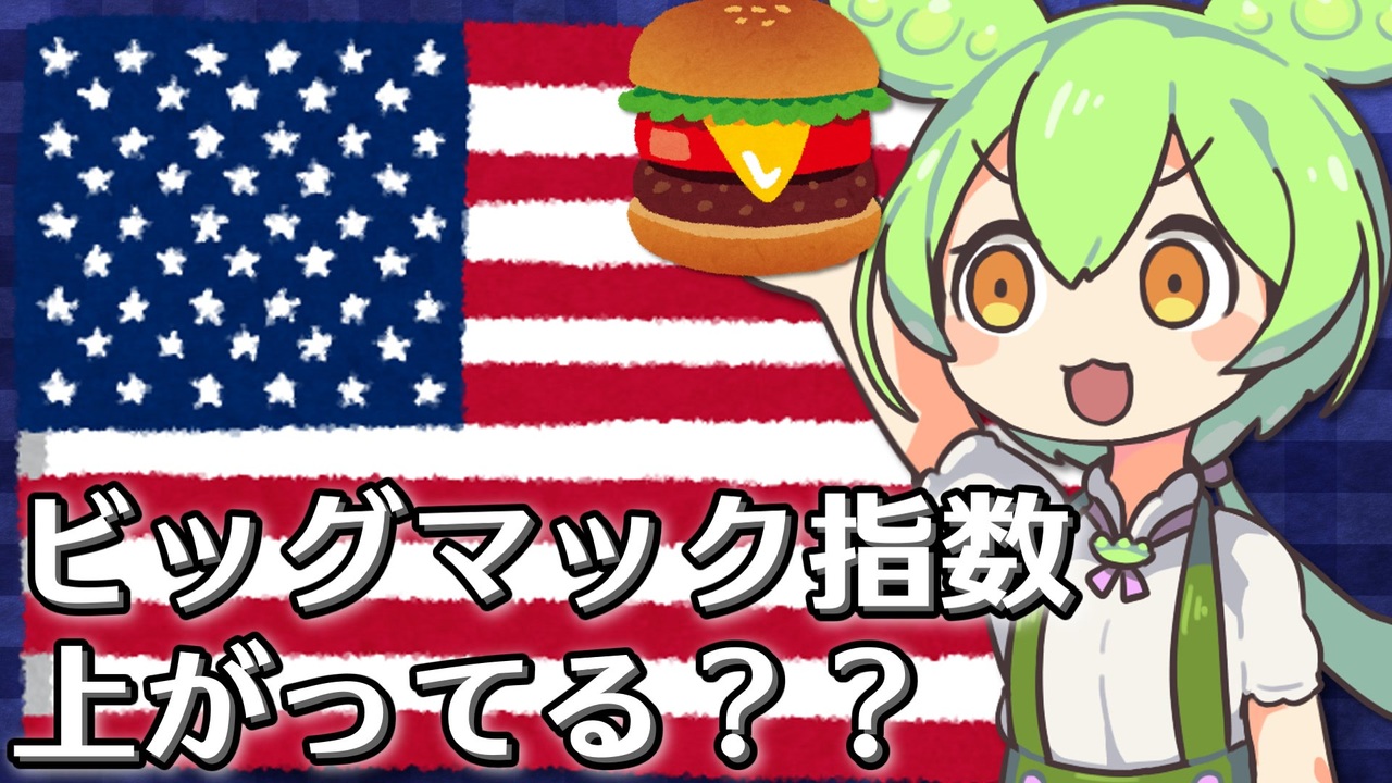 ひるマック...<br><br>前:<a href="https://www.nicovideo.jp/watch/sm41647983" class="watch">sm41647983</a> (アラハル成功0?)<br>次:<a href="https://www.nicovideo.jp/watch/sm41712581" class="watch">sm41712581</a> (ヤクーツク寒い)<br>マイリスト:<a href="https://www.nicovideo.jp/mylist/73393608" target="_blank" rel="noopener">mylist/73393608</a><br><br>使わせていただいているもの(敬称略)<br>VOICEVOX/hiho[ <a href="https://voicevox.hiroshiba.jp/" target="_blank" rel="noopener nofollow">https://voicevox.hiroshiba.jp/</a> ]<br>ずんだもん立ち絵素材/坂本アヒル[<a href="https://seiga.nicovideo.jp/seiga/im10788496" target="_blank" rel="noopener">im10788496</a>]<br>東北きりたん立ち絵素材/坂本アヒル[<a href="https://seiga.nicovideo.jp/seiga/im10849150" target="_blank" rel="noopener">im10849150</a>]<br><br>Youtube版:<a href="https://youtu.be/qWwJzVCE4ns" target="_blank" rel="noopener nofollow">https://youtu.be/qWwJzVCE4ns</a><br>Twitter:<a href="https://twitter.com/Yuharumuri" target="_blank" rel="noopener nofollow">https://twitter.com/Yuharumuri</a><br><br>[2023/1/27]<br>編集ミスを修正しました。<br>該当コメントにつきましては混乱を防止するため恐縮ですが非表示にさせていただきます。<br>その他、訂正事項を以下に羅列します。<br>(誤)ビックマック指数 (正)ビッグマック指数<br>(誤)BIM指数 (正)BMI指数<br>(誤)シカゴ州 (正)イリノイ州シカゴ市<br><br><a target="_blank" href="https://qa.nicovideo.jp/faq/show/19424?site_domain=default" style="font-size: 13px;color: #657586; text-decoration: underline; line-height: 1.4">この動画は投稿者によって修正されました</a>