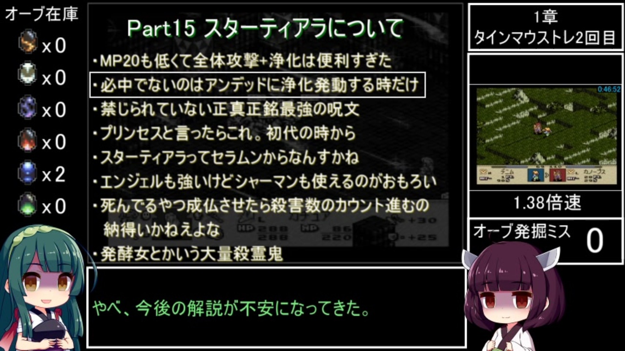 毎日放送と動画投稿の両立がキツくなったので平日のみの放送に変更。<br>それで何とか週1ペースで投稿できそうな気がしてきました。<br>ずん子の声の高さを1.15→1.05に、抑揚を1.30→1.15に変更しました。<br>きりたんは変更なし、でもあまり大して変わらねぇな?<br><br>※本動画で使われてる正八面体サイコロは<br>フリー動画素材サイトのナカネオ氏ttp://nakaneo.com/index.htmlの<br>モーショングラフィックス動画を使わせてもらってます。<br><br>前→<a href="https://www.nicovideo.jp/watch/sm41628628" class="watch">sm41628628</a><br>次→<a href="https://www.nicovideo.jp/watch/sm41690075" class="watch">sm41690075</a><br><br>マイリスト→<a href="https://www.nicovideo.jp/mylist/73323226" target="_blank" rel="noopener">mylist/73323226</a><br>過去作投稿一覧→<a href="https://www.nicovideo.jp/mylist/63487603" target="_blank" rel="noopener">mylist/63487603</a><br>ニコ生RTAコミュニティ→co3832963<br><br>