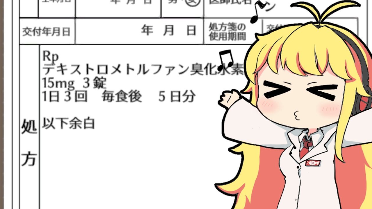 処方箋について疑わしい点があった時に薬剤師が処方医に問い合わせる、「疑義照会」をテーマにしたゲーム、「疑義照会ウォーズ」で遊びながら、登場する医薬品について解説していく動画です。<br><br>どちらかというと解説メインの動画なので、「解説・講座」ジャンルで投稿します。<br><br><span style="color: #0000ff; font-size: 16px;"><strong>いいねをするとプチお薬解説が見れるぞ!</strong></span><br><br>プレイは生放送でやりました。アーカイブはこちら。<br><a href="https://www.youtube.com/watch?v=0txQa2U6r0o&t=3984s" target="_blank" rel="noopener nofollow">https://www.youtube.com/watch?v=0txQa2U6r0o&t=3984s</a><br><br><u>Youtube(ゲーム実況チャンネル)</u><br><a href="https://www.youtube.com/channel/UCcLWyYVS3ysazvYjN7pKXuw" target="_blank" rel="noopener nofollow">https://www.youtube.com/channel/UCcLWyYVS3ysazvYjN7pKXuw</a><br><u>Youtube(お薬解説チャンネル)</u><span style="color: #ff0000;"><strong>2023年1月1日運用開始</strong></span><br><a href="https://www.youtube.com/channel/UCqp3XrY7wux-E3kl4A4ZmQQ" target="_blank" rel="noopener nofollow">https://www.youtube.com/channel/UCqp3XrY7wux-E3kl4A4ZmQQ</a><br><u>Twitter</u><br><a href="https://twitter.com/Iwashi_bibili" target="_blank" rel="noopener nofollow">https://twitter.com/Iwashi_bibili</a> <br><br><br><span style="color: #262626;">使用ソフト<br>Premiere Pro<br>After Effects<br>VOICEROID2<br>VoiceroidUtil<br>2dActorTools</span><br><br> ================薬剤師マキの挑む薬剤師シミュレーター==================<br><span style="color: #0000ff; font-size: 13px;">マキ立ち絵:えびごはん 様( <a href="https://twitter.com/ebi_gohan" target="_blank" rel="noopener nofollow">https://twitter.com/ebi_gohan</a> ) <<オリジナル立ち絵のため配布しておりません>></span><span style="color: #0000ff;"> </span><br>ゲーム: 疑義照会ウォーズ(Steam <a href="https://store.steampowered.com/app/1799080/_/)" target="_blank" rel="noopener nofollow">https://store.steampowered.com/app/1799080/_/)</a><br><br><a target="_blank" href="https://qa.nicovideo.jp/faq/show/19424?site_domain=default" style="font-size: 13px;color: #657586; text-decoration: underline; line-height: 1.4">この動画は投稿者によって修正されました</a>