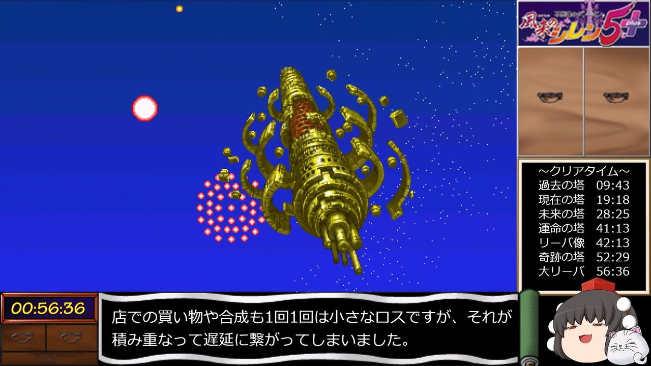 <span style="color: #980000; font-size: 16px;"><strong>part"2/2"の続きでございます… part"1/2"の続きであろうはずがございません。</strong></span><br><br>風来のシレン5+(Steam版)のRTAです。<br>初RTAなので色々と拙いのはご容赦ください…<br><br>この動画は風来のシレン5+ ストーリーRTA「part2/2」の後編的な内容となっております。<br>パ↑ート2にまとめると文字が潰れて読めやしない!<br>RTA初心者だって、はっきりわかんだね。<br><br>RTAルールやシレン5のデータはwikiを参考にさせて頂きました<br> → <a href="https://seesaawiki.jp/w/shiren5/" target="_blank" rel="noopener nofollow">https://seesaawiki.jp/w/shiren5/</a><br><br>奇跡の塔~エンディングまで<br>part1→<a href="https://www.nicovideo.jp/watch/sm41605245" class="watch">sm41605245</a><br>part2→<a href="https://www.nicovideo.jp/watch/sm41667867" class="watch">sm41667867</a>