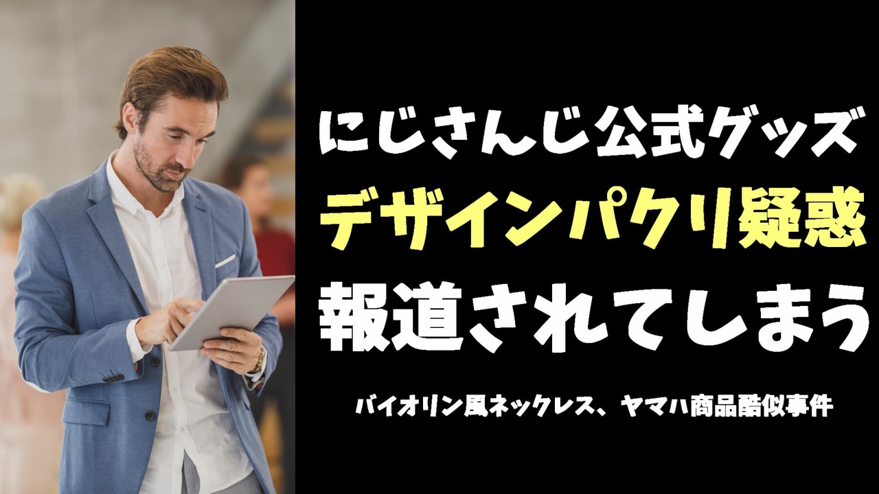 2023年1月17日、株式会社日本ジャーナル出版が運営するニュースサイトでにじさんじのグッズがヤマハのバイオリンのデザインを無断でパクってるのではないかという疑惑が報じられました。<br><br>にじさんじバイオリン風ネックレス事件 5/30本目<br><br>にじさんじ運営のガーリーコレクション騒動時の謝罪ツイート<br><a href="https://twitter.com/nijisanji_app/status/1505348404271992832" target="_blank" rel="noopener nofollow">https://twitter.com/nijisanji_app/status/1505348404271992832</a><br><br>バイオリンの酷似参考画像はこちら<br><a href="https://twitter.com/V_Virgin_Mary/status/1612098195181670400" target="_blank" rel="noopener nofollow">https://twitter.com/V_Virgin_Mary/status/1612098195181670400</a><br><br>参考<br>エレクトリックバイオリン YEVシリーズ<br><a href="https://www.yamaha.com/ja/news_release/2017/17031301/" target="_blank" rel="noopener nofollow">https://www.yamaha.com/ja/news_release/2017/17031301/</a><br><br>【VOLTACTION Half Anniversary】バイオリン風ネックレス(セラフ・ダズルガーデンモデル) <br><a href="https://shop.nijisanji.jp/s/niji/item/detail/SSZS-20537?ima=2801" target="_blank" rel="noopener nofollow">https://shop.nijisanji.jp/s/niji/item/detail/SSZS-20537?ima=2801</a><br><br>引用<br>『にじさんじ』公式グッズに再びパクリ疑惑? メゾンドフルールに続いてヤマハが…<br><a href="https://myjitsu.jp/enta/archives/116869" target="_blank" rel="noopener nofollow">https://myjitsu.jp/enta/archives/116869</a><br><a href="https://twitter.com/ahamo_official/status/1499658773383761924" target="_blank" rel="noopener nofollow">https://twitter.com/ahamo_official/status/1499658773383761924</a><br><a href="https://twitter.com/MaisondeFLEUR1/status/1524265333346824192" target="_blank" rel="noopener nofollow">https://twitter.com/MaisondeFLEUR1/status/1524265333346824192</a><br><a href="https://twitter.com/nijisanji_app/status/1499655941024845830" target="_blank" rel="noopener nofollow">https://twitter.com/nijisanji_app/status/1499655941024845830</a><br><br><br>Youtube <a href="https://www.youtube.com/channel/UCzYQ..." target="_blank" rel="noopener nofollow">https://www.youtube.com/channel/UCzYQ...</a><br>twitter <a href="https://twitter.com/V_Virgin_Mary" target="_blank" rel="noopener nofollow">https://twitter.com/V_Virgin_Mary</a><br><br>使用素材<br>高品質なフリー動画素材 - Pixabay <a href="https://pixabay.com/ja/videos" target="_blank" rel="noopener nofollow">https://pixabay.com/ja/videos</a>