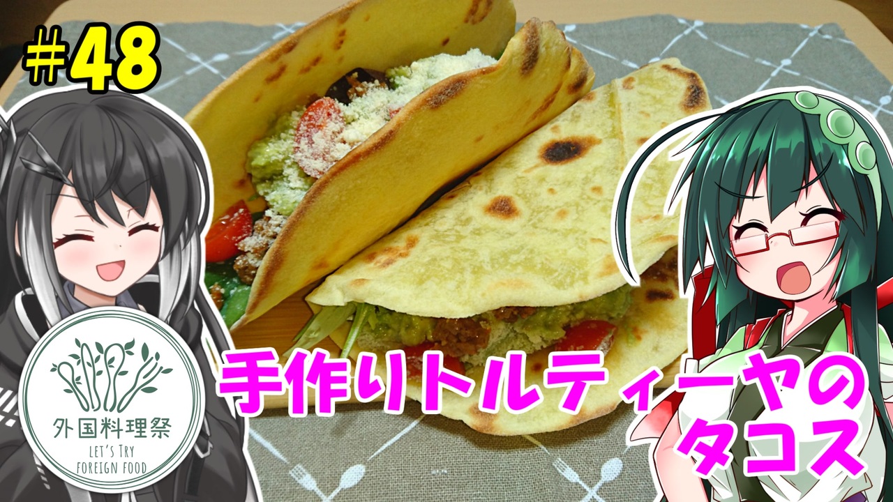 えいぼん! 様主催の「外国料理祭(<a href="https://www.nicovideo.jp/watch/sm41455782" class="watch">sm41455782</a>)」に参加させていただきます。<br><br>普段からどちらかというと外国っぽい料理作って動画にしてるし、<br>主催が住んでるイギリスの料理は誰かやるだろうから外すとして、<br>じゃあいっそ日本から一番遠いブラジルの料理にするかなーと思ったんですけど、<br>もうちょい近い所でメキシコのタコス、せっかくなんでトルティーヤから作ってみました。<br>そんなに難しくもないし、いろいろ使い回せるんでオススメです。<br><br>あと今回からずんちゃんがVOICEPEAKになりました。<br>今まで以上にほんわかほんわかな感じでめっちゃ癒されるけど<br>もうちょい調整しても良さそうですねw<br><br><span style="color: #ff0000; font-size: 10px;">※「応援したい」のか「荒らし」なのかの判断ができませんので、<br> かんたんコメント機能での大量送信はお控えください。<br> 何百件も同じコメントが流れ続けるのは流石にちょっとアレです。<br> 何事も程々がちょうど良いのです。</span><br><br><br>Voiced by <a href="https://CoeFont.cloud" target="_blank" rel="noopener nofollow">https://CoeFont.cloud</a><br><br><br><a href="https://www.nicovideo.jp/watch/sm41622939" class="watch">sm41622939</a>←前の 次の→<a href="https://www.nicovideo.jp/watch/sm41708612" class="watch">sm41708612</a><br><br>ついったー<br><a href="https://twitter.com/KitchenKiyotaka" target="_blank" rel="noopener nofollow">https://twitter.com/KitchenKiyotaka</a>