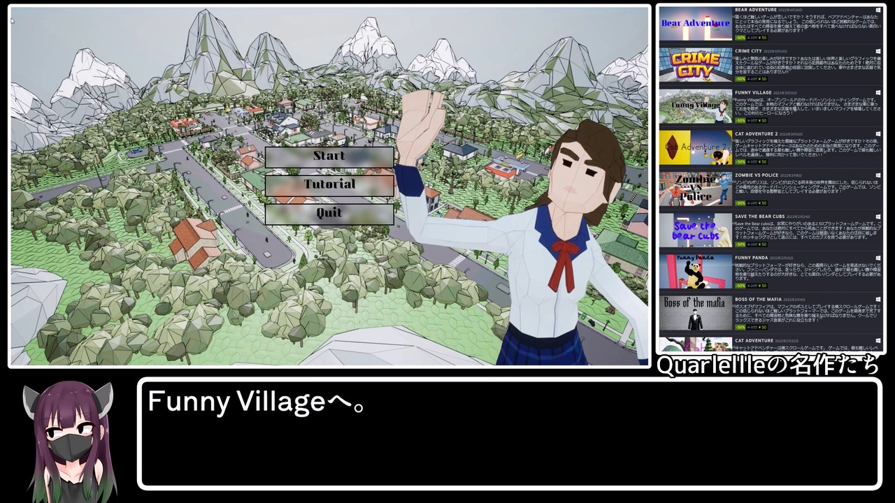 Quarlellleのゲームをやると言い知れぬ陶酔感に襲われます。死に瀕した際のモルヒネ代わりにお勧め。<br><br>■コレ<br><a href="https://store.steampowered.com/app/1917840/Funny_Village/" target="_blank" rel="noopener nofollow">https://store.steampowered.com/app/1917840/Funny_Village/</a><br><br><a target="_blank" href="https://qa.nicovideo.jp/faq/show/19424?site_domain=default" style="font-size: 13px;color: #657586; text-decoration: underline; line-height: 1.4">この動画は投稿者によって修正されました</a>