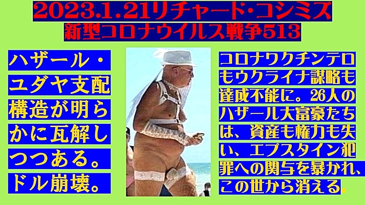 <span style="color: #cc4125;"><strong>「 テーマ : 新型コロナウイルス戦争 513 」</strong></span><br><br><span style="color: #ff0000;"><strong>「『 ハザール・ユダヤ支配構造 』が、明らかに『 瓦解 』しつつある。『 ドル崩壊 』。『 コロナワクチン・<br> テロ 』も『 ウクライナ謀略 』も、『 達成不能 』に。<br> 『 26人のハザール大富豪 』たちは、『 資産 』も『 権力 』も失い、『 ジェフリー・エプスタイン犯罪 』<br> への『 関与 』を暴かれ、『 この世から消える! 』」</strong></span><br><br><span style="color: #0000ff;"><strong>「『 イベルメクチン・アビガン・その他コロナ対策 』について、ご意見をお寄せ下さい! 」<br><br>◐ E-mail:richardkoshimizu@gmail.com</strong></span><br><br><strong>◐「クリエイターサポート」・「フォロー」・「ニコニ広告」等、是非ともご協力下さい。リチャード・コシミズ</strong><br><br><span style="color: #38761d;"><strong>◐ リチャード・コシミズ 講演会 公式 動画ギャラリー</strong></span><br> <a href="http://www.t-sskk.com/richardkoshimizu/video-gallery/index.html" target="_blank" rel="noopener nofollow">http://www.t-sskk.com/richardkoshimizu/video-gallery/index.html</a><br><br><span style="color: #38761d;"><strong>◐ リチャード・コシミズ 講演会 ニコニコ生放送 LIVE</strong></span><br> <a href="https://bit.ly/3Bx8F5w" target="_blank" rel="noopener nofollow">https://bit.ly/3Bx8F5w</a><br><br><span style="color: #38761d;"><strong>◐ リチャード・コシミズ 公式 ブログ</strong></span><br> <a href="http://08054623210.jugem.jp/" target="_blank" rel="noopener nofollow">http://08054623210.jugem.jp/</a><br><br><span style="color: #38761d;"><strong>◐ リチャード・コシミズ 公式 ホームページ<br> </strong></span><a href="http://richardkoshimizu.boo.jp/" target="_blank" rel="noopener nofollow">http://richardkoshimizu.boo.jp/</a><br><br><span style="color: #38761d;"><strong>◐ リチャード・コシミズ 公式 Twitter</strong></span><br> <a href="https://twitter.com/rickoshimizu" target="_blank" rel="noopener nofollow">https://twitter.com/rickoshimizu</a><br>