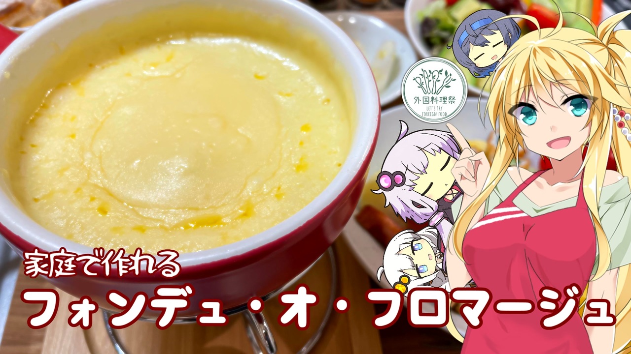 今回はえいぼんさん(<a href="https://www.nicovideo.jp/user/91174502" target="_blank" rel="noopener">user/91174502</a>)主催【外国料理祭】の参加動画になります。<br><br>調べるまでスイスの郷土料理だと知らなかったんですが、チーズを溶かす以外は手もかからず美味しくいただきました。<br><br>告知動画 <a href="https://www.nicovideo.jp/watch/sm41275222" class="watch">sm41275222</a><br><br>前回 <a href="https://www.nicovideo.jp/watch/sm40903246" class="watch">sm40903246</a><br>ツイッター登録してみた @mikihisakrh<br>車載動画リスト <a href="https://www.nicovideo.jp/mylist/64201272" target="_blank" rel="noopener">mylist/64201272</a><br>劇場・ボイ酒・単発動画など <a href="https://www.nicovideo.jp/mylist/65763170" target="_blank" rel="noopener">mylist/65763170</a><br><br>【使用ツール・お借りした素材について】<br>コンテンツツリーの登録は週末までに行わせていただきます。<br><br>~使用ソフト~<br>Aviutl<br>PSDtoolkit<br><br>【画像・音楽・効果音など】<br>ニコニ・コモンズ様 、甘茶の音楽工房様、フリーBGM・音楽素材MusMus様、Filmoraフリー効果音素材様、おとわび様、Audiostock様、騒音のない世界様、photoAC様<br>