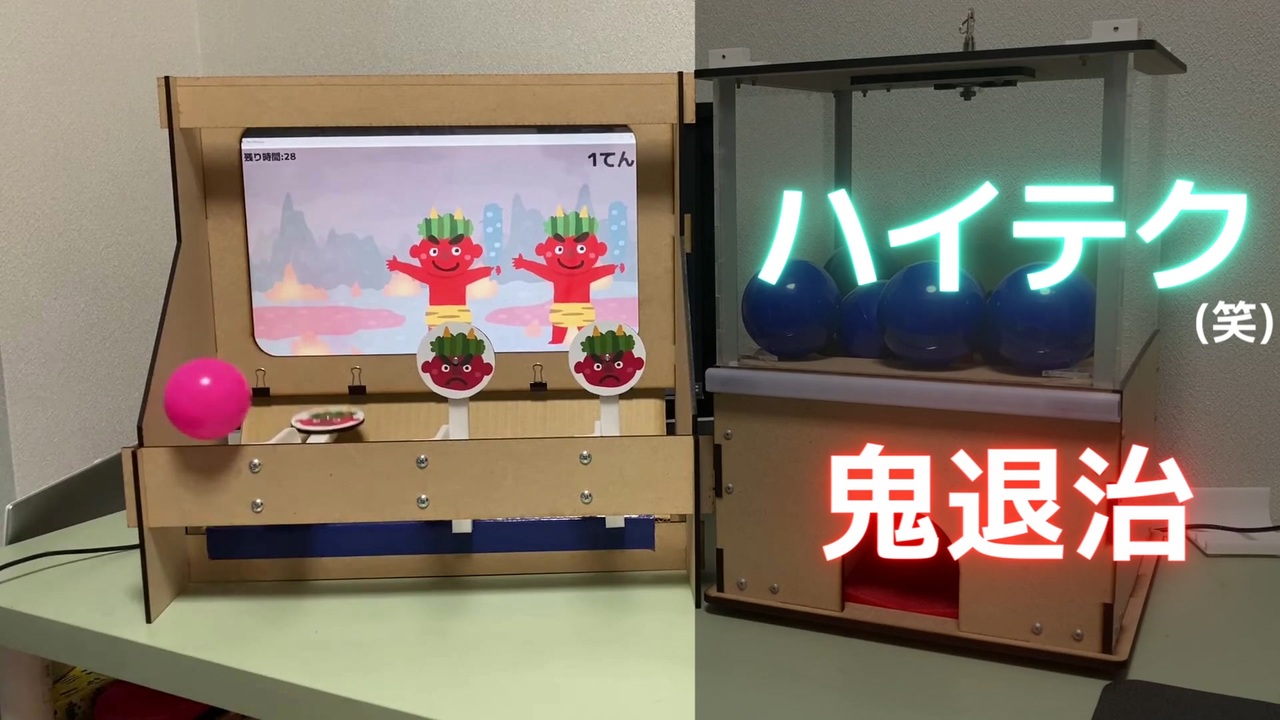 <span style="color: #ff9900; font-size: 18px;"><strong>節分が近いので、鬼役がいなくても鬼退治ができるように作ってみました。<br>個包装された豆を投げれば、気分は豆まきです。</strong></span><br><br><span style="color: #ff0000; font-size: 16px;"><strong>作品リスト:</strong></span><span style="font-size: 16px;"><strong><a href="https://www.nicovideo.jp/mylist/74533673" target="_blank" rel="noopener nofollow">https://www.nicovideo.jp/mylist/74533673</a></strong></span><br><br><span style="color: #0000ff; font-size: 16px;"><strong>製作過程等を発信しています<br>Twitter:</strong></span><a href="https://twitter.com/Ontama_Design" target="_blank" rel="noopener nofollow">https://twitter.com/Ontama_Design</a><br><br>YouTubeにも投稿しています。全然伸びません...(泣)<br><a href="https://www.youtube.com/channel/UCQC0h_wTUfk8entes6feTiA" target="_blank" rel="noopener nofollow">https://www.youtube.com/channel/UCQC0h_wTUfk8entes6feTiA</a><br><br><br><strong>使用させていただいたもの</strong><br>・合成音声:VOICEVOX:春日部つむぎ<br>・動画編集:Aviutl<br>・音楽:甘茶の音楽工房<br>・音楽:魔王魂<br>・効果音:効果音ラボ<br>・効果音:無料効果音で遊ぼう<br>・イラスト:いらすとや<br>・フォント:M+Font<br>