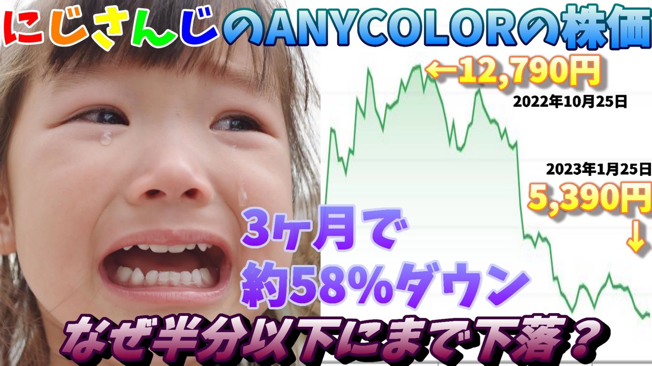 2022年12月5日以降、にじさんじを運営するANYCOLOR株式会社の株式が下がり、去年10月の4割ちょっとになっていることが個人投資家向けサイトを中心に話題になっているようです。この動画では2022年12月5日と12月15日の下落の理由について解説します。<br><br>にじさんじ運営のガーリーコレクション騒動時の謝罪ツイート<br><a href="https://twitter.com/nijisanji_app/status/1505348404271992832" target="_blank" rel="noopener nofollow">https://twitter.com/nijisanji_app/status/1505348404271992832</a><br><br>バイオリンの酷似参考画像はこちら<br><a href="https://twitter.com/V_Virgin_Mary/status/1612098195181670400" target="_blank" rel="noopener nofollow">https://twitter.com/V_Virgin_Mary/status/1612098195181670400</a><br><br>参考<br>エレクトリックバイオリン YEVシリーズ<br><a href="https://www.yamaha.com/ja/news_release/2017/17031301/" target="_blank" rel="noopener nofollow">https://www.yamaha.com/ja/news_release/2017/17031301/</a><br><br>【VOLTACTION Half Anniversary】バイオリン風ネックレス(セラフ・ダズルガーデンモデル) <br><a href="https://shop.nijisanji.jp/s/niji/item/detail/SSZS-20537?ima=2801" target="_blank" rel="noopener nofollow">https://shop.nijisanji.jp/s/niji/item/detail/SSZS-20537?ima=2801</a><br><br>Youtube <a href="https://www.youtube.com/@V_Virgin_Mary" target="_blank" rel="noopener nofollow">https://www.youtube.com/@V_Virgin_Mary</a><br>twitter <a href="https://twitter.com/V_Virgin_Mary" target="_blank" rel="noopener nofollow">https://twitter.com/V_Virgin_Mary</a><br><br>引用<br> 2023年4月期 第2四半期決算短信〔日本基準〕(非連結)<br><a href="https://www.anycolor.co.jp/ir/results" target="_blank" rel="noopener nofollow">https://www.anycolor.co.jp/ir/results</a><br><br>使用素材<br>高品質なフリー動画素材 - Pixabay <a href="https://pixabay.com/ja/videos" target="_blank" rel="noopener nofollow">https://pixabay.com/ja/videos</a>