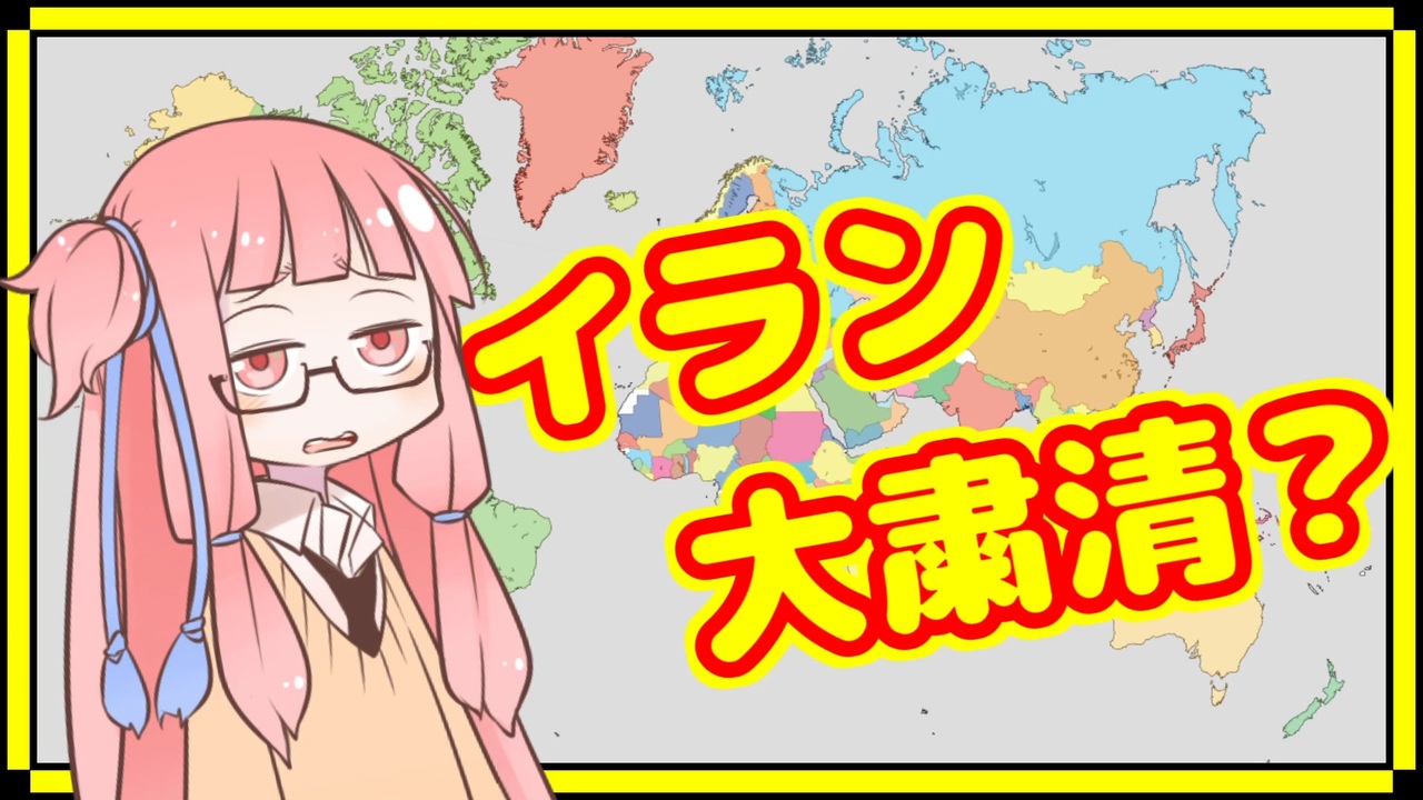 毎年始に何かしら問題起きるイメージがあるなぁこの国。<br><span style="color: #ff0000; font-size: 16px;"><strong>ちなみに投稿後、イランの複数の軍需工場がドローン攻撃受けたそうです。もうほんとなんなん・・・</strong></span><br><br>●使用楽曲<br>・日本ファルコム様「下校途中にパンケーキ」<br>・甘茶の音楽工房様「四本のリコーダー」<br><br />※この動画ではA.I.VOICEを使っていますが、普及具合を鑑みてタグにはVOICEROID解説を併記させていただいております。<br><br>世界情勢検索ボット作成中(note):<a href="https://note.com/todo_1582/n/n3b76a6aafd0d" target="_blank" rel="noopener nofollow">https://note.com/todo_1582/n/n3b76a6aafd0d</a><br>ニコニコチャンネル:<a href="https://ch.nicovideo.jp/to-do" target="_blank" rel="noopener nofollow">https://ch.nicovideo.jp/to-do</a><br>現代史解説 <a href="https://www.nicovideo.jp/series/166058" target="_blank" rel="noopener">series/166058</a><br>世界情勢振り返り <a href="https://www.nicovideo.jp/series/352199" target="_blank" rel="noopener">series/352199</a><br>ムスリみの違い解説 <a href="https://www.nicovideo.jp/series/352200" target="_blank" rel="noopener">series/352200</a><br>マイリスト <a href="https://www.nicovideo.jp/mylist/69599837" target="_blank" rel="noopener">mylist/69599837</a><br>Youtube:<a href="https://youtube.com/playlist?list=PL6pjlejdhtK6JxdZZp_3ZqAGmDghvdfu0" target="_blank" rel="noopener nofollow">https://youtube.com/playlist?list=PL6pjlejdhtK6JxdZZp_3ZqAGmDghvdfu0</a>