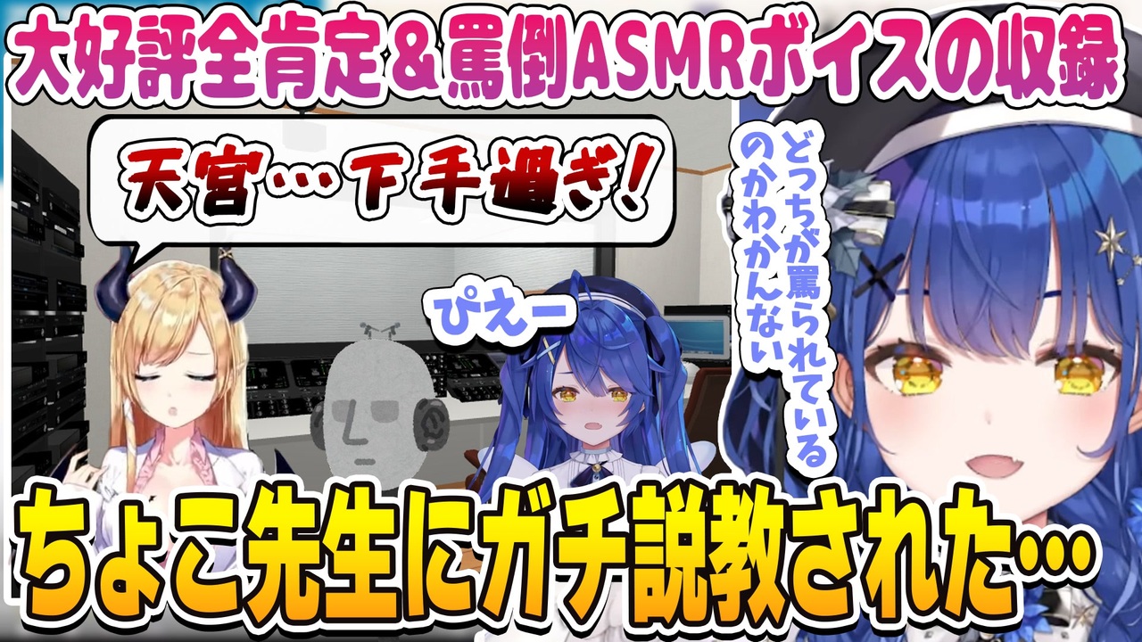 ちなみにあまみゃのボイス聞いてみたら罵倒ボイスといっても結局割と甘い感じです<br><br><a href="#" class="seekTime" data-seekTime="4:11" onclick="seekNicoPlayer('#4:11'); return false;">#4:11</a> ちょこ先生のASMRみを感じる初配信<br><br>天宮こころASMR/バイノーラル シチュエーションボイス(全肯定&罵り)<br><a href="https://shop.nijisanji.jp/s/niji/item/detail/dig-01171" target="_blank" rel="noopener nofollow">https://shop.nijisanji.jp/s/niji/item/detail/dig-01171</a><br><br>▼元動画↓<br>✯*. ぼっち・ざ・ろっくに影響されたオタクが 『ギターと孤独と蒼い惑星』を練習する配信 ˎˊ˗ 〖 天宮こころ┊にじさんじ 〗<br><a href="https://www.youtube.com/watch?v=RDczjzaNj2k&t=7128s" target="_blank" rel="noopener nofollow">https://www.youtube.com/watch?v=RDczjzaNj2k&t=7128s</a><br>【Vtuber】悪魔の保健医癒月ちょこ初配信【ホロライブ/癒月ちょこ】<br><a href="https://www.youtube.com/watch?v=9btrd2rcJX8" target="_blank" rel="noopener nofollow">https://www.youtube.com/watch?v=9btrd2rcJX8</a><br><br>▼登場Vtuber<br>天宮 こころ / Amamya Ch.<br><a href="https://www.youtube.com/c/%E5%A4%A9%E5%AE%AE%E3%81%93%E3%81%93%E3%82%8DAmamyaCh" target="_blank" rel="noopener nofollow">https://www.youtube.com/c/%E5%A4%A9%E5%AE%AE%E3%81%93%E3%81%93%E3%82%8DAmamyaCh</a><br>Choco Ch. 癒月ちょこ(ホロライブ)<br><a href="https://www.youtube.com/@YuzukiChoco" target="_blank" rel="noopener nofollow">https://www.youtube.com/@YuzukiChoco</a><br><br><br><br><br><a target="_blank" href="https://qa.nicovideo.jp/faq/show/19424?site_domain=default" style="font-size: 13px;color: #657586; text-decoration: underline; line-height: 1.4">この動画は投稿者によって修正されました</a>